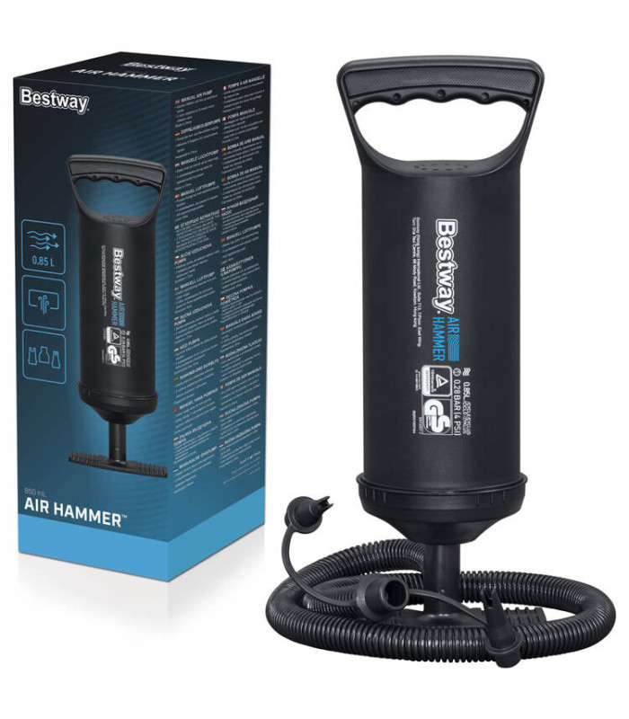 bestway rankinė dvipusė pompa skirta čiužiniams, kamuoliams, valtims ir kitiems pripučiamiems žaislams pripūsti. Ji pumpuoja orą tiek keliant, tiek spaudžiant, todėl pripūtimas vyksta greičiau ir efektyviau.