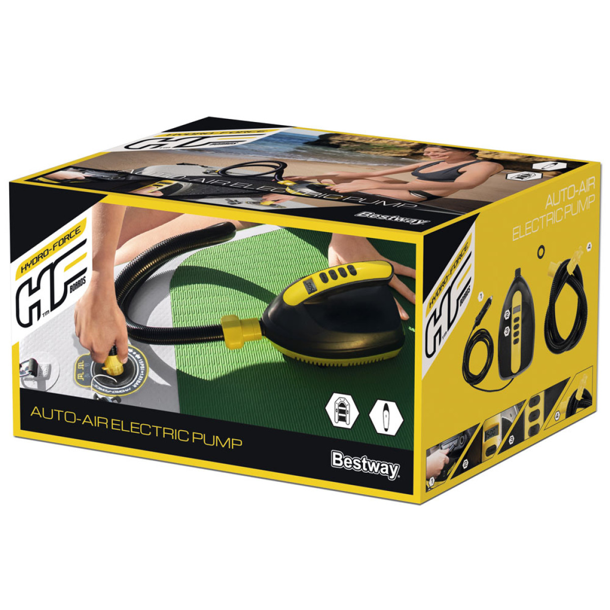 Elektrinė automobilinė pompa, gaminama Bestway, yra puikus pasirinkimas pripučiant čiužinius, plaukimo ratus ar irklenčių ir valčių pripučiamus produktus. Ši pompa tinka daugeliui profesionalių valtelių, kurių darbinis slėgis yra nuo 2 iki 16 PSI. Aukšto slėgio vožtuvai užtikrina greitą ir paprastą oro pripildymą.