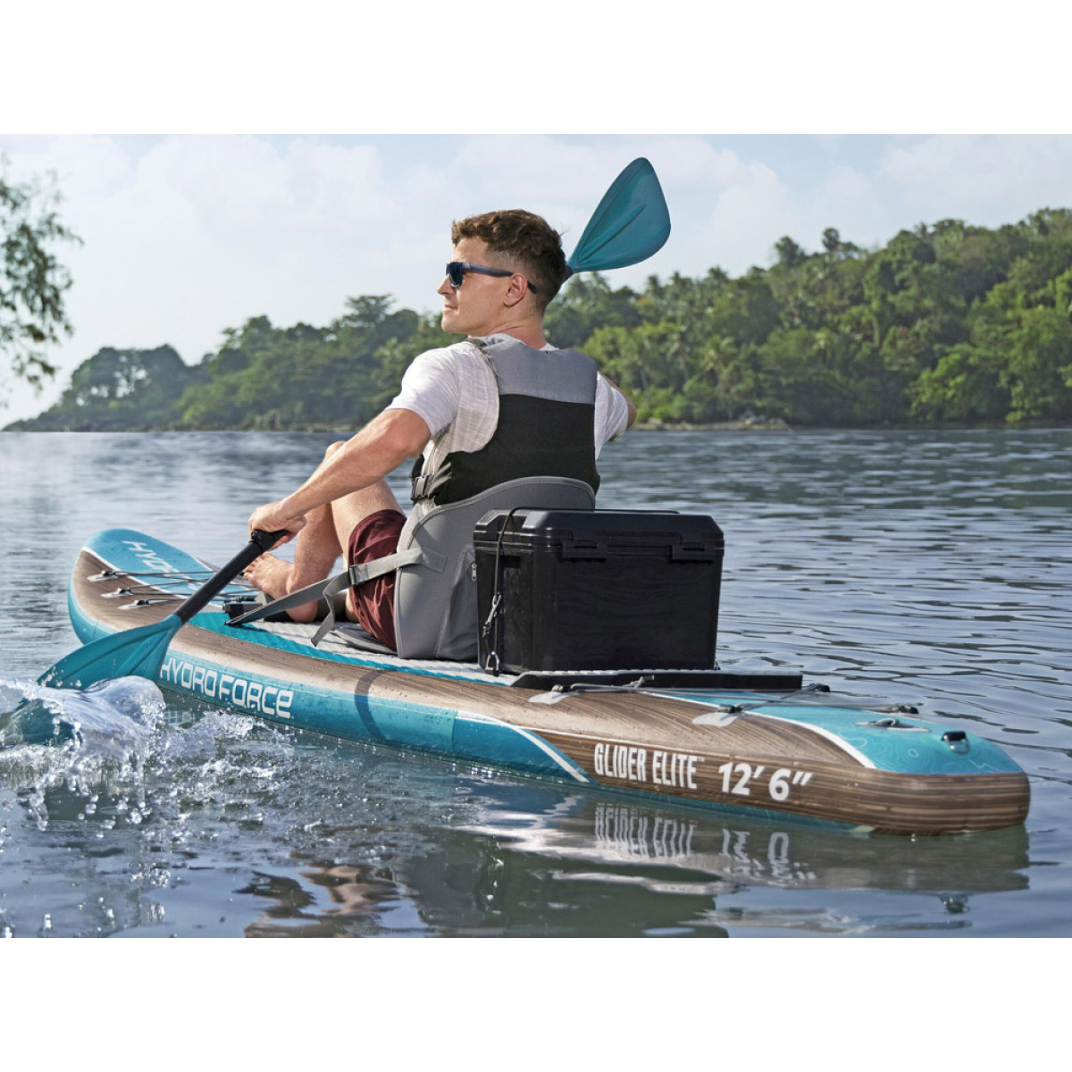 HydroForce® Glider Elite™ rinkinys – tai puiki priemonė aktyviam laisvalaikiui prie vandens. Šis dviejų viename pripučiamas rinkinys leidžia mėgautis tiek irklavimu sėdint, tiek stovint. Plati ir stabili konstrukcija puikiai tinka ilgesnėms kelionėms ramiose vandenyse.