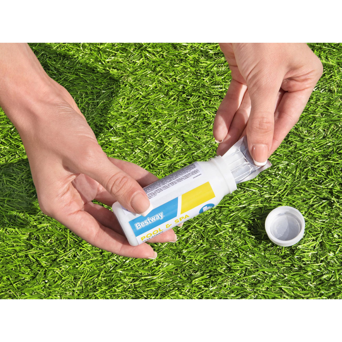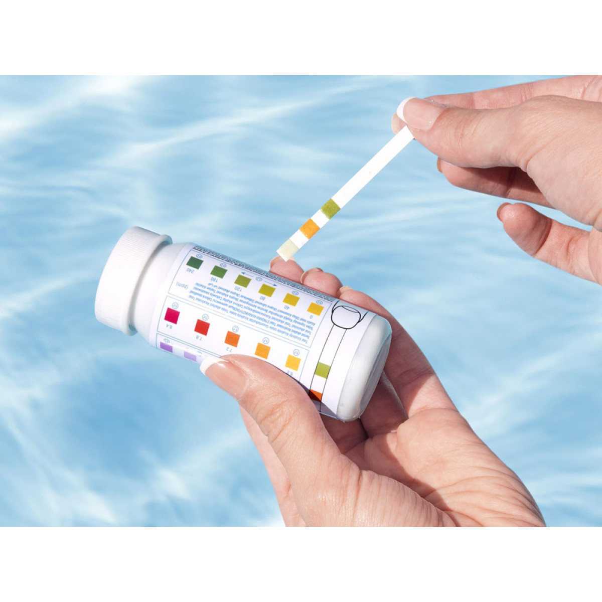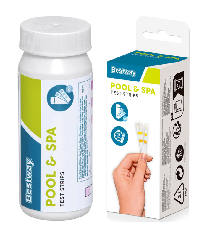 Juostelė nustato šarmingumą ir chloro lygį. Panardinus juostelę į vandenį, jis pakeičia spalvą, o naudojant ant pakuotės nurodytą spalvų lentelę, galima greitai ir lengvai patikrinti kiekvienos cheminės medžiagos lygį vandenyje.