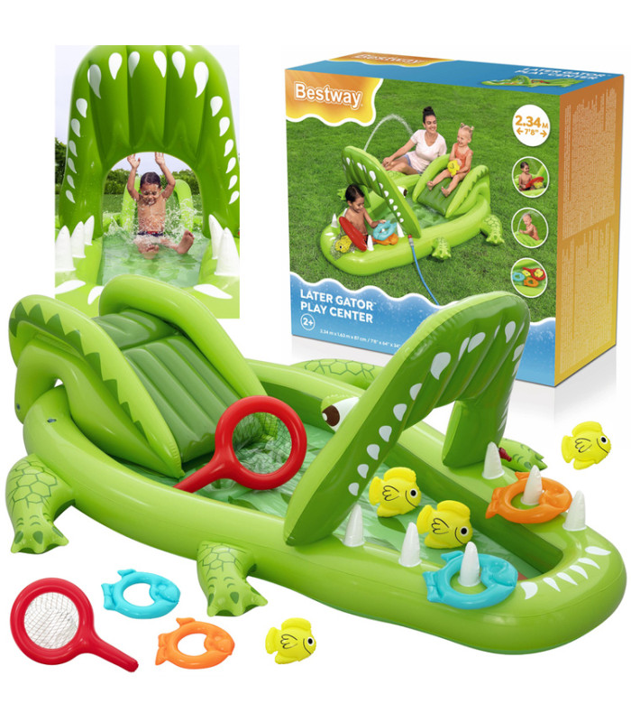 Bestway Vandens žaidimų aikštelė KROKODILAS 234x163x87cm su čiuožykla ir priedais 53169