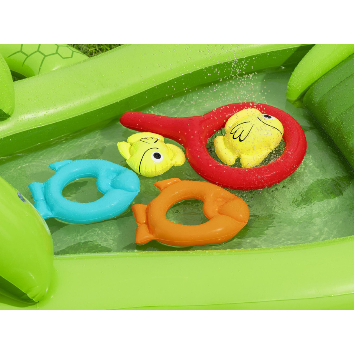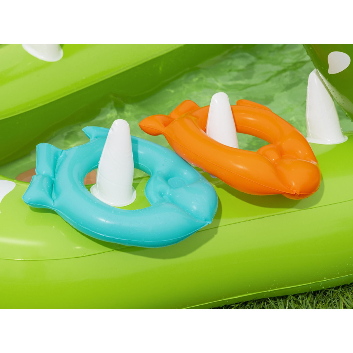 - 2 x pripučiami žiedai žaidimui (žuvys ir krokodilo dantys)
