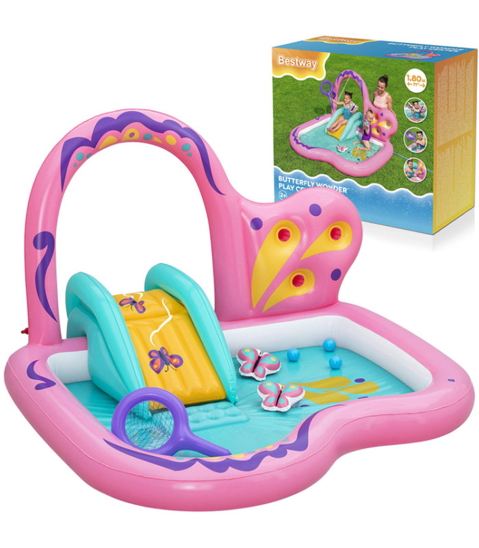 Bestway Vandens Žaidimų Aikštelė MOTYLEK 180x180x117 cm su čiuožykla ir priedais