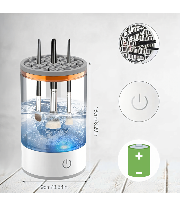 Elektra varomas belaidis šepetėlių ploviklis yra patikimas įrenginys valantis, džiovinantis ir laikantis šepetėlius. Dėl 7000 apsisukimų per minutę greičio jis kruopščiai pašalina kosmetikos likučius, nešvarumus ir bakterijas, taupydamas jūsų laiką ir užtikrindamas higieną. Idealiai tinka visiems, kas nori džiaugtis tobulu makiažu ir sveika oda.