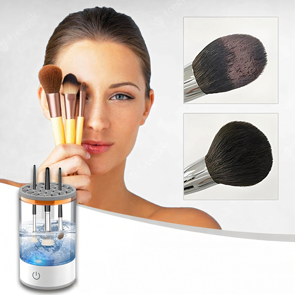 Belaidis kosmetinių šepetėlių ploviklis 3 viename