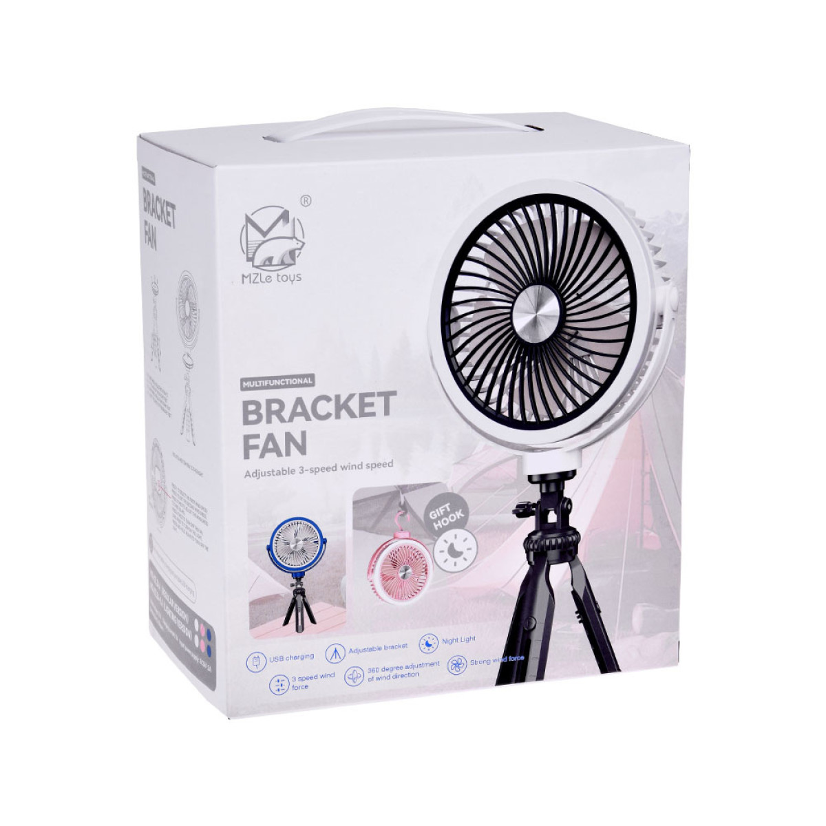 - Universalus naudojimas: ventiliatorių galima pakabinti palapinėje ant kabliuko arba pastatyti ant reguliuojamų kojų darbo stalą.