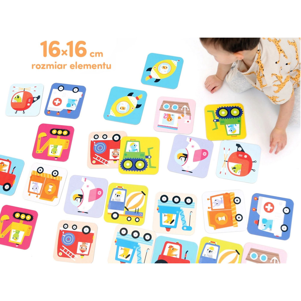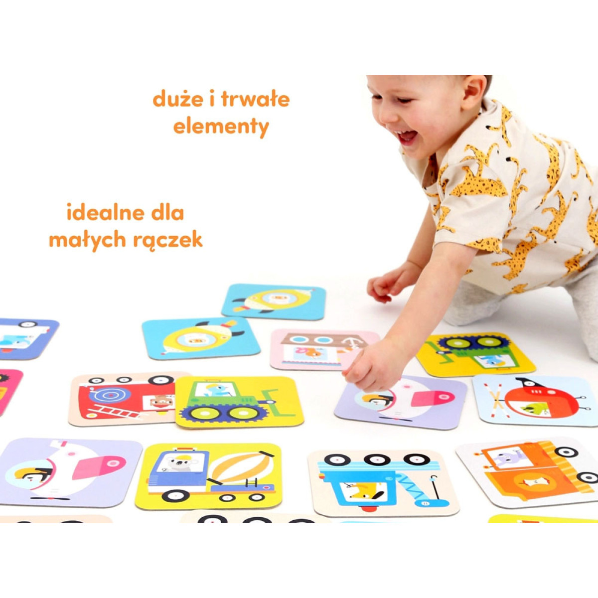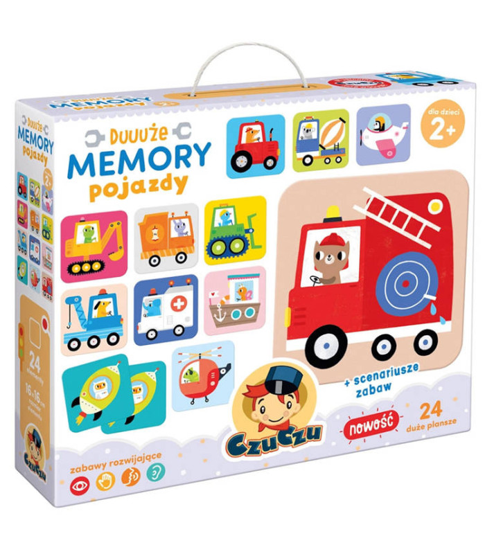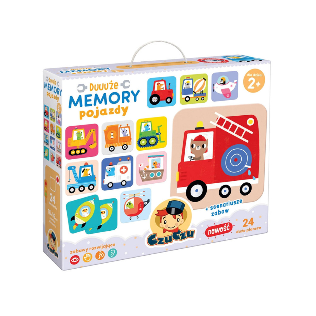 CzuCzu Duuuže Memory Transporto Priemonės yra edukacinis žaidimas, kuris leidžia vaikams lavinti atmintį, koncentraciją ir pastabumą. Edukacinis rinkinys susideda iš tikrai didelių, gražiai iliustruotų elementų. Sunkumo lygį galima derinti pagal vaiko gebėjimus, pradedant nuo žaidimo su dviem arba trimis poromis, laikui bėgant pridėti daugiau transporto priemonių. Su planšetėmis galima žaisti įvairiais būdais, į rinkinį įtrauktas vadovas su 28 scenarijais edukaciniam žaidimui.