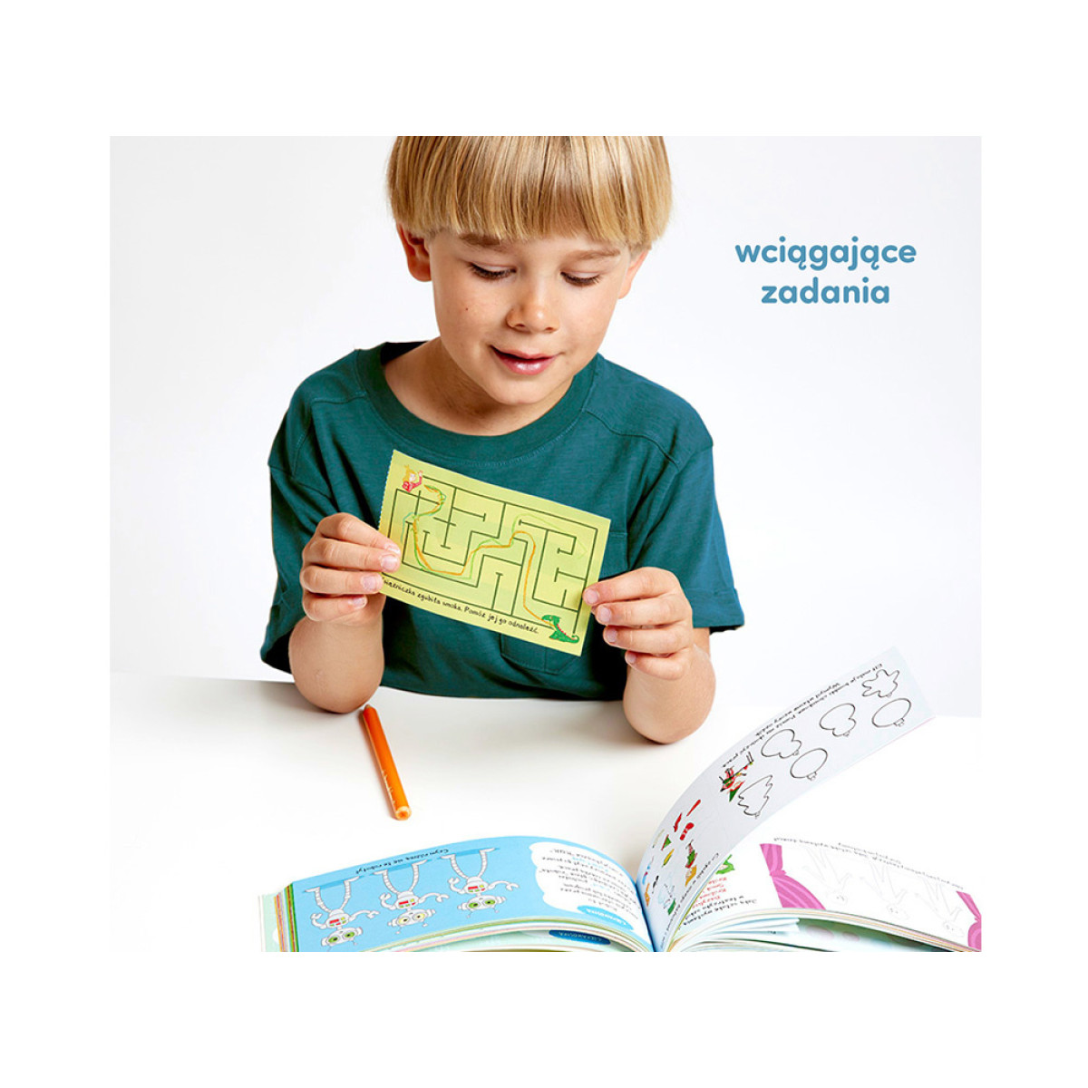 Edukacinė knygelė vyresniems darželinukams su 240 įtraukiančių žaidimų ir nauja informacija. Kiekvienas puslapis sudarytas iš įdomybės ar užduoties ir dalies, skirtos rašymui, piešimui, žymėjimui, kurią galima atplėšti dėl perforacijos. Dėl patogaus formato ją visada galite turėti su savimi!