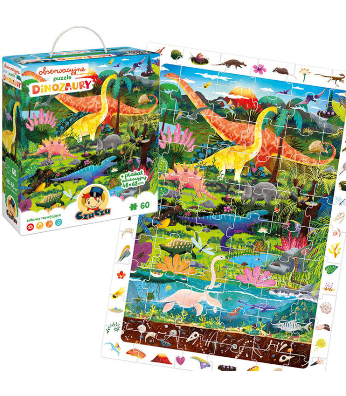 CzuCzu Stebėjimo dėlionė Dinozaurai 60 dalių edukacinis plakatas