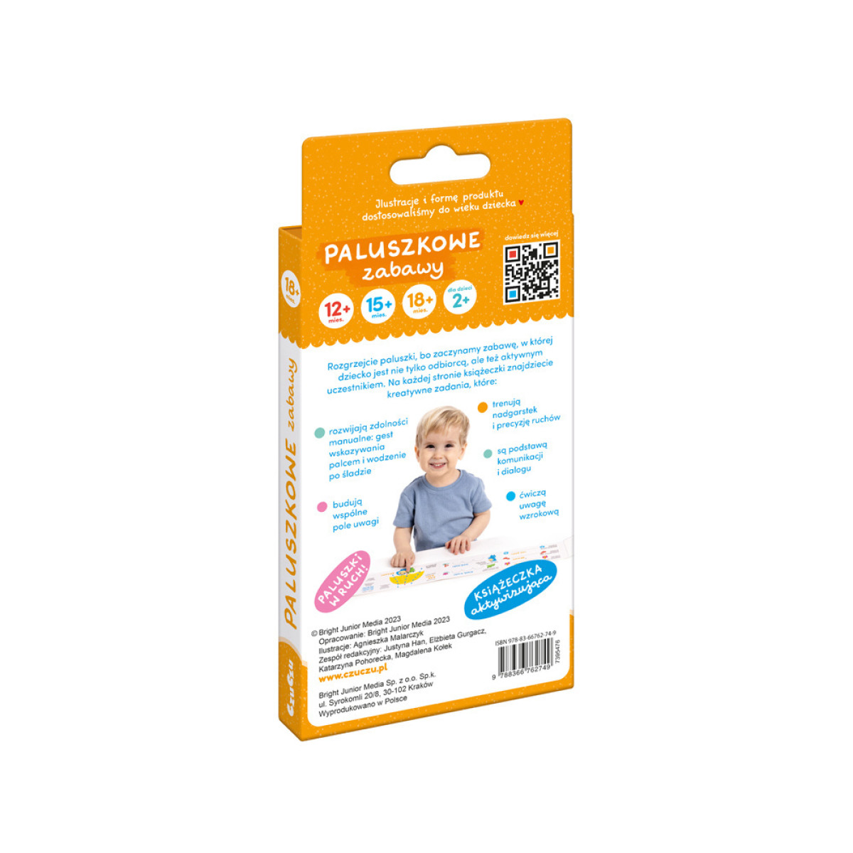 Paluskovy žaidimai yra išskirtinė aktyvinanti knygelė, skirta lavinti koncentraciją ir smulkiąją motoriką. Ilga harmonikos tipo knygelė turi užduotis, kurios įtraukia vaiką į žaidimus ir įgūdžių lavinimą. Paluskovy žaidimai pilni įdomių, spalvingų iliustracijų ir idėjų linksmoms veikloms, pritaikytoms vaiko įgūdžiams ir interesams.
