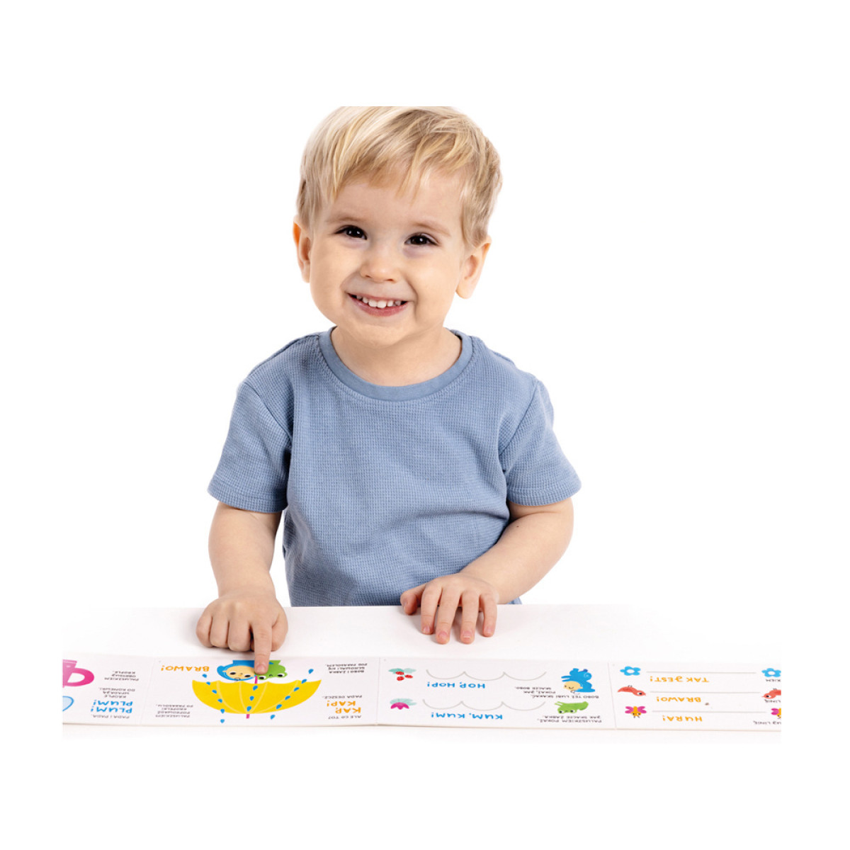 Žaidimas su knygelė yra puiki idėja bendrai leisti laiką. Žiūrėkite kartu knygelę, garsiai skaitykite užrašus, rodydami ir vadindami, kas matoma iliustracijose, leiskite linksmus garsus. Skaitymo metu vaikas ne tik stebi ar klausosi, bet ir aktyviai dalyvauja žaidime.
