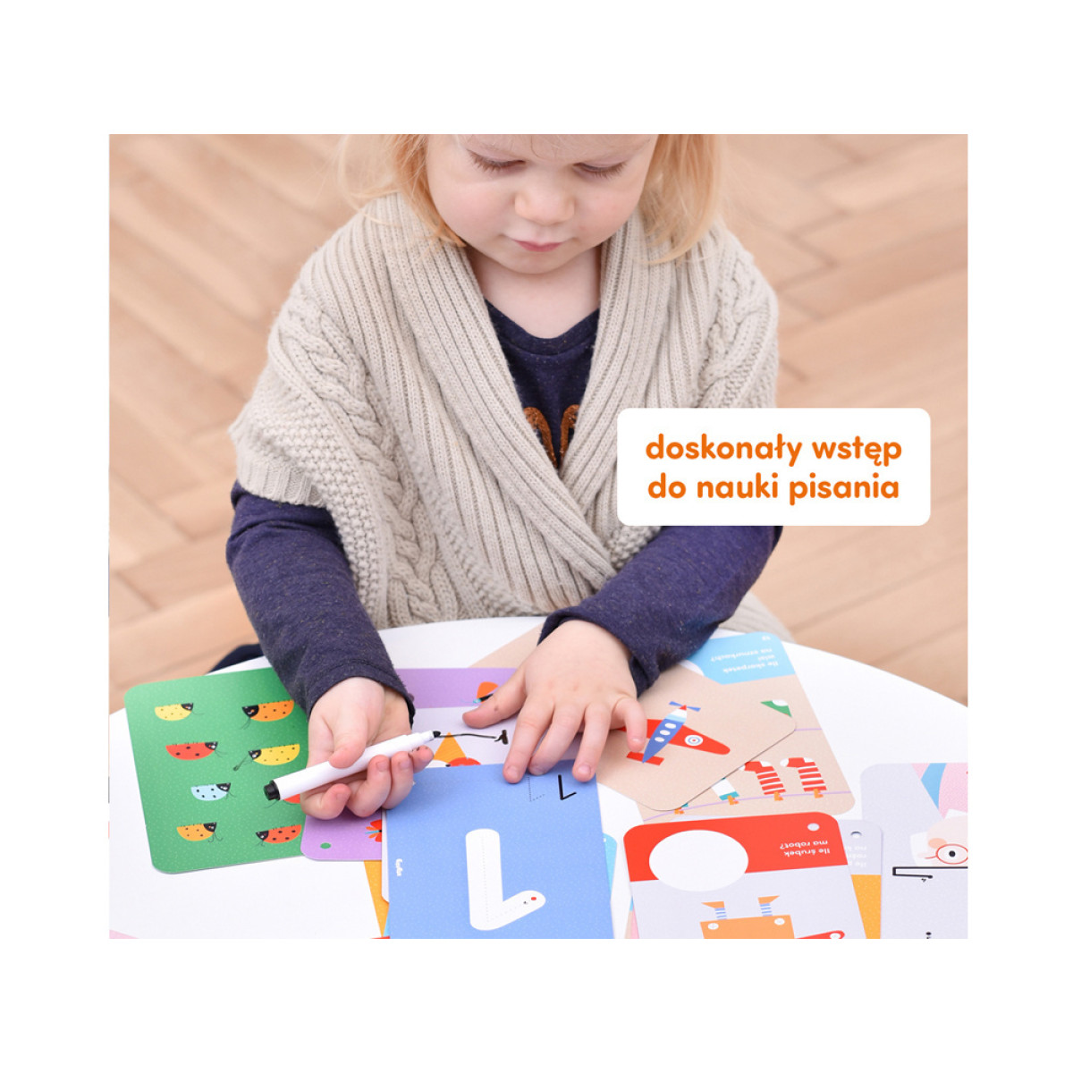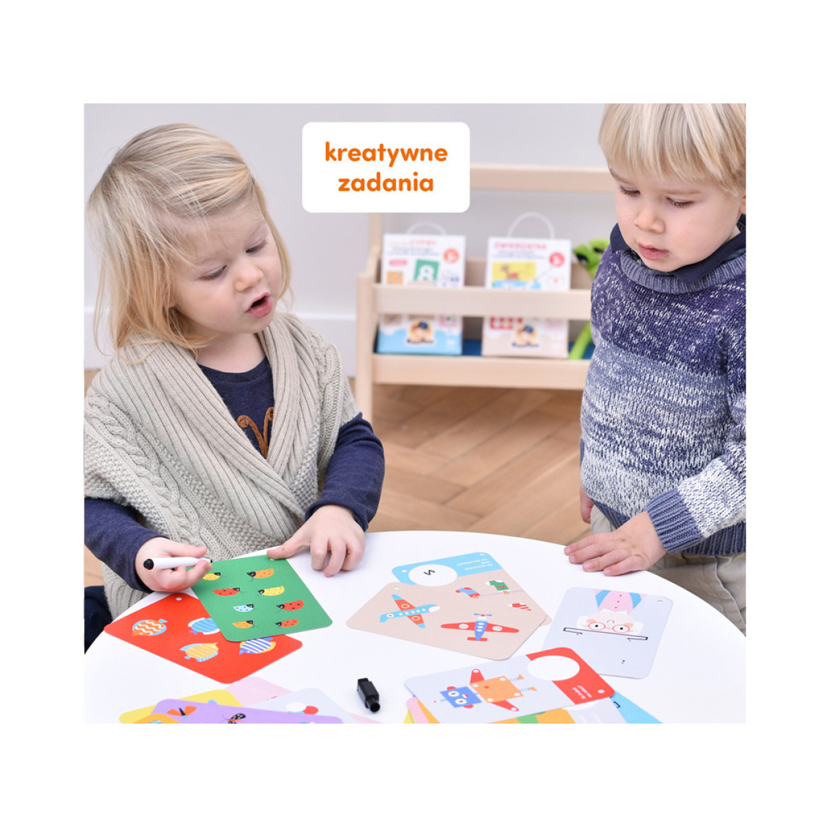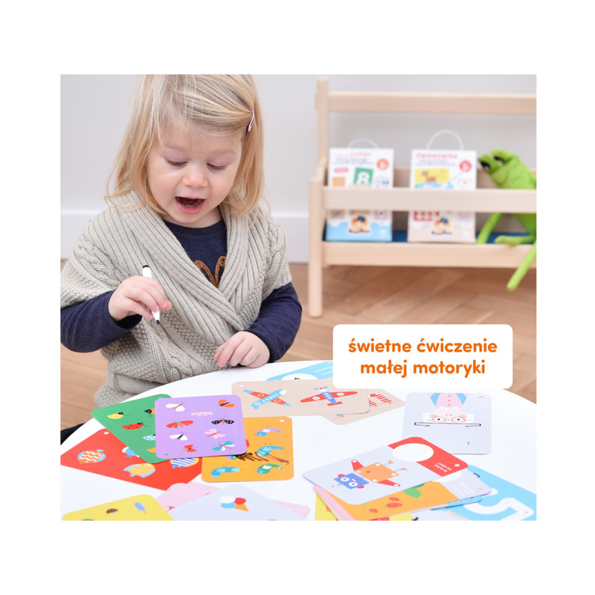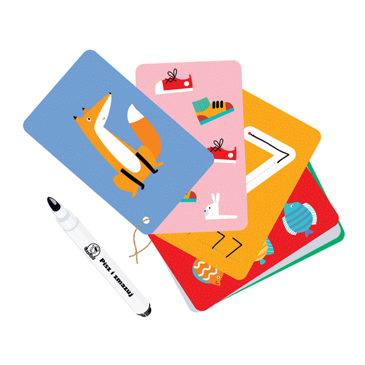 Edukacinis rinkinys sudarytas iš knygelės su įdomiomis užduotimis ir magiško rašiklio. Spalvingos, humoro ir linksmų detalių pilnos iliustracijos įkvepia vaikus kūrybingiems žaidimams bei skatina pirmuosius rašymo ir skaičiavimo bandymus. Kortelės leidžia daugybę kartų piešti ir trinti. Rinkinys taip pat apima tėvų vadovą su žaidimų idėjomis ir informacija apie vaikų grafomotorinį vystymąsi.