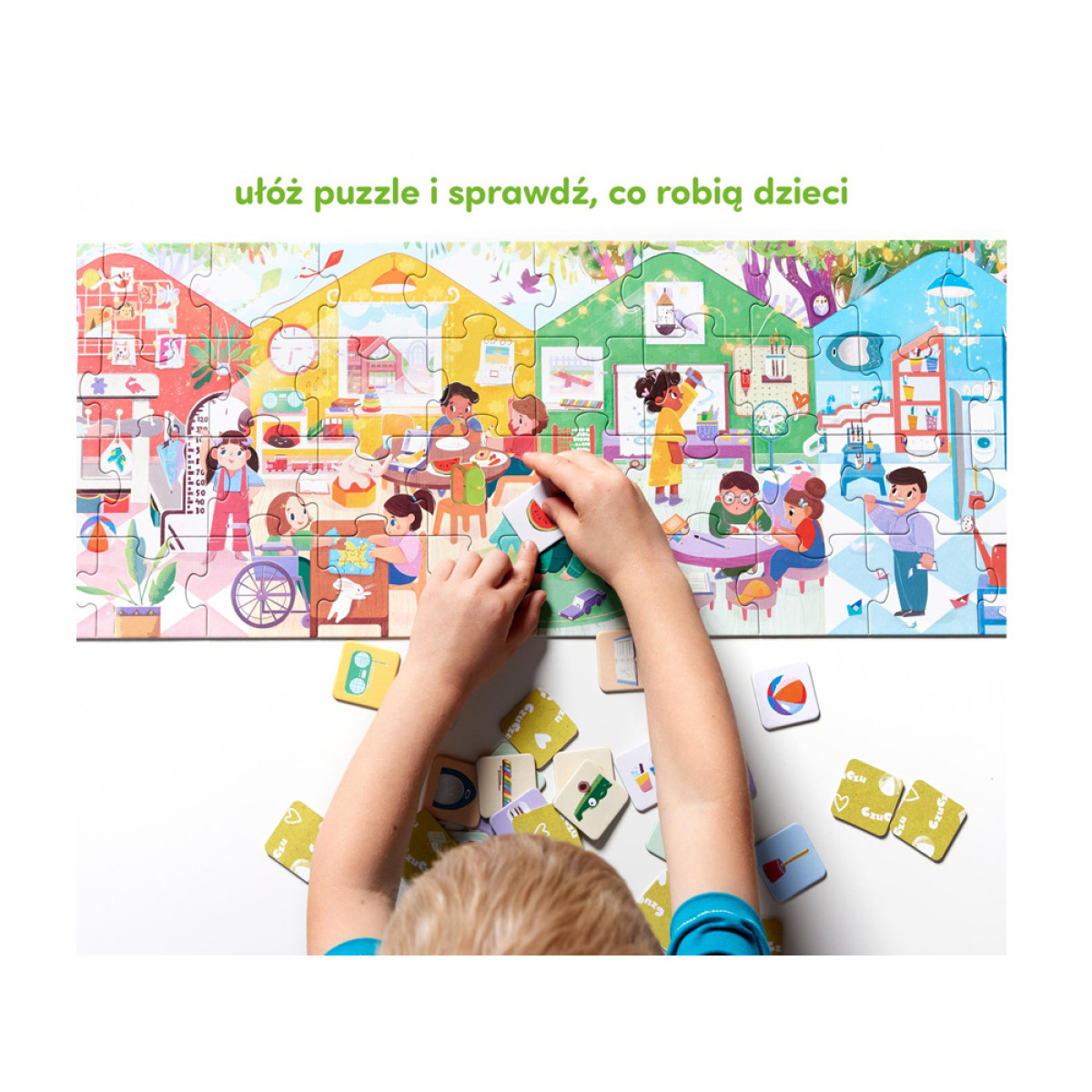 Rinkinį sudaro: 40 dalių dėlionė, 32 papildomos kortelės, edukacinis plakatas. Dėžutės matmenys: 16,5 × 19 × 5 cm. Didelės dalys pagamintos iš tvirto, ilgaamžio kartono. Puikiai tinka darželinukams, skatina kūrybiškumą, pastabumą ir žinių įgijimą. Sukurta ir pagaminta Lenkijoje.