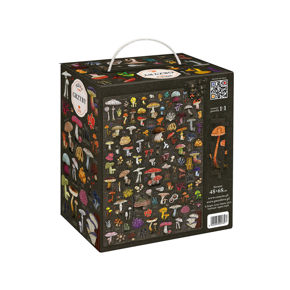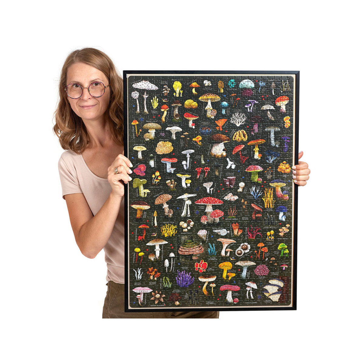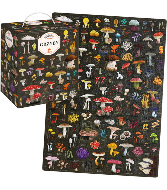 Ši dėlionė suteikia išskirtinę patirtį ne tik užkietėjusiems grybautojams. Prieš jus šimtai grybų, kuriuos galima rasti Lietuvos miškuose – nuo valgomųjų iki nuodingų, nuo gerai žinomų iki retai sutinkamų. Prieš išmokstant visų jų rūšių, jūsų laukia iššūkis, dėliojant 1000 detalių. Puikiai tinka kiekvienam, kuris mėgsta tyrinėti gamtą! Tarp grybų pateikiami jų pavadinimai ir įvairūs elementai, užpildantys erdvę, kad būtų įdomiau! Pavyzdžiui, tai gali būti miško uogos.