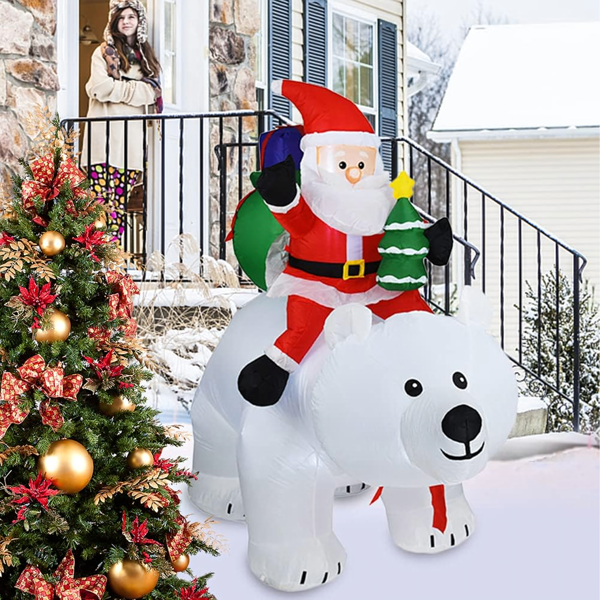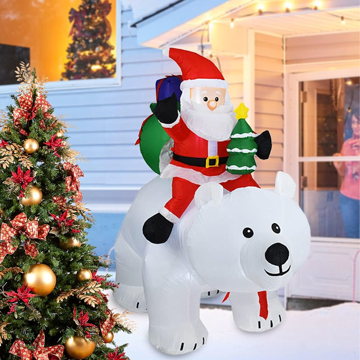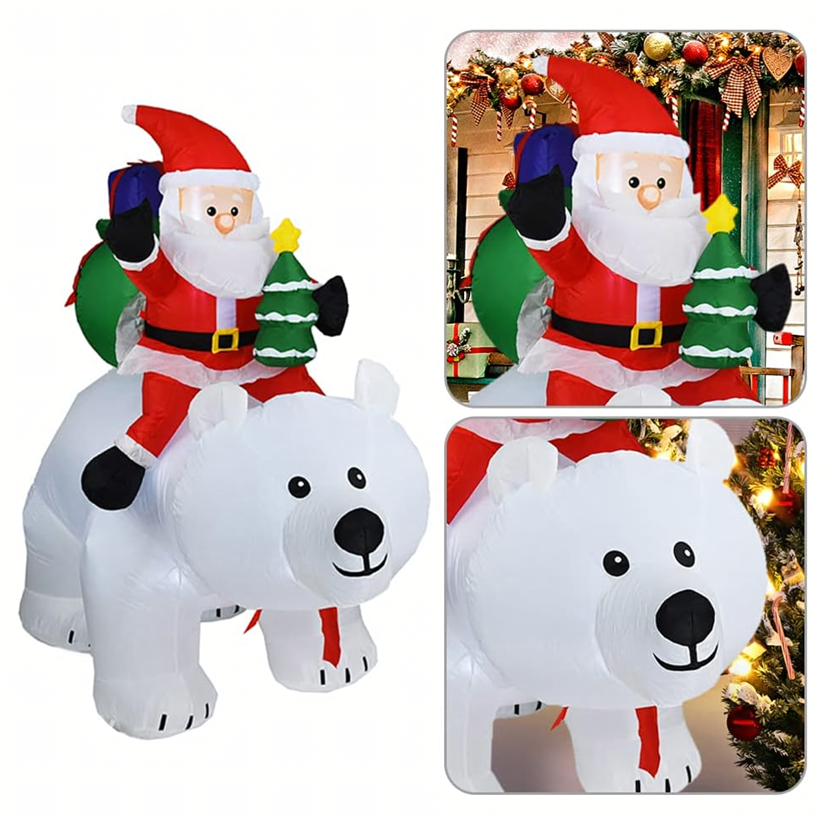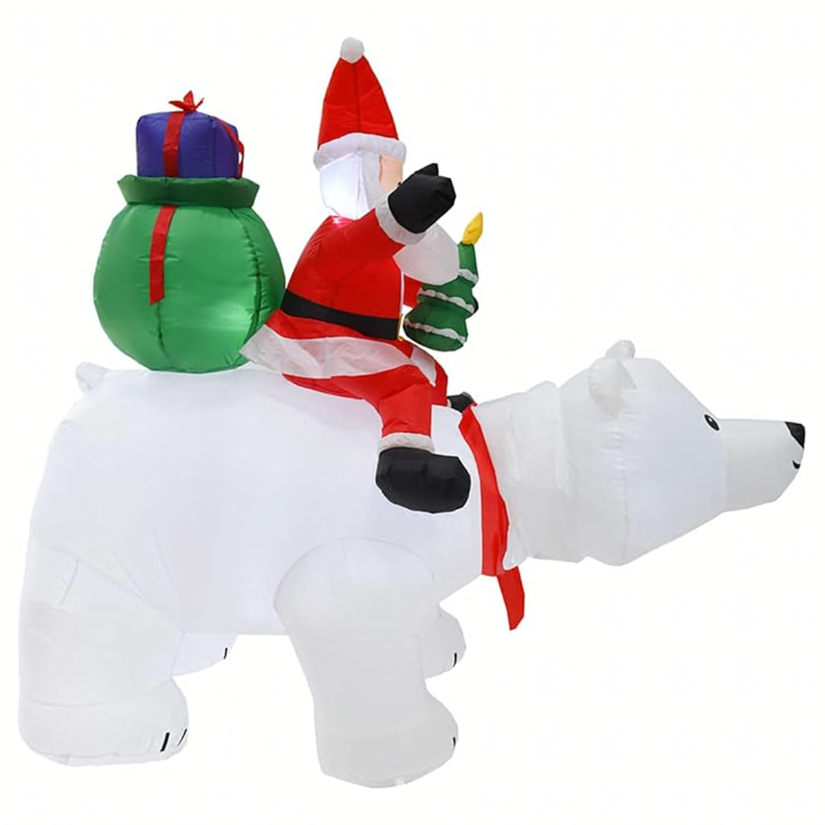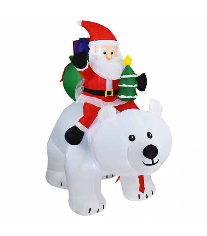 Kalėdinė dekoracija - Pripučiamas Kalėdų Senelis ant Meškos LED XXL 2,1m