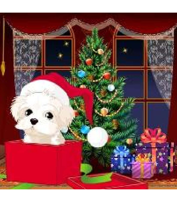 Su rinkiniu „šventinis šuniukas“ galėsite patys sukurti žėrintį 5d paveikslą. Tai pilnas rinkinys, skirtas savarankiškam darbui, kurio dydis yra 20 x 20 cm.