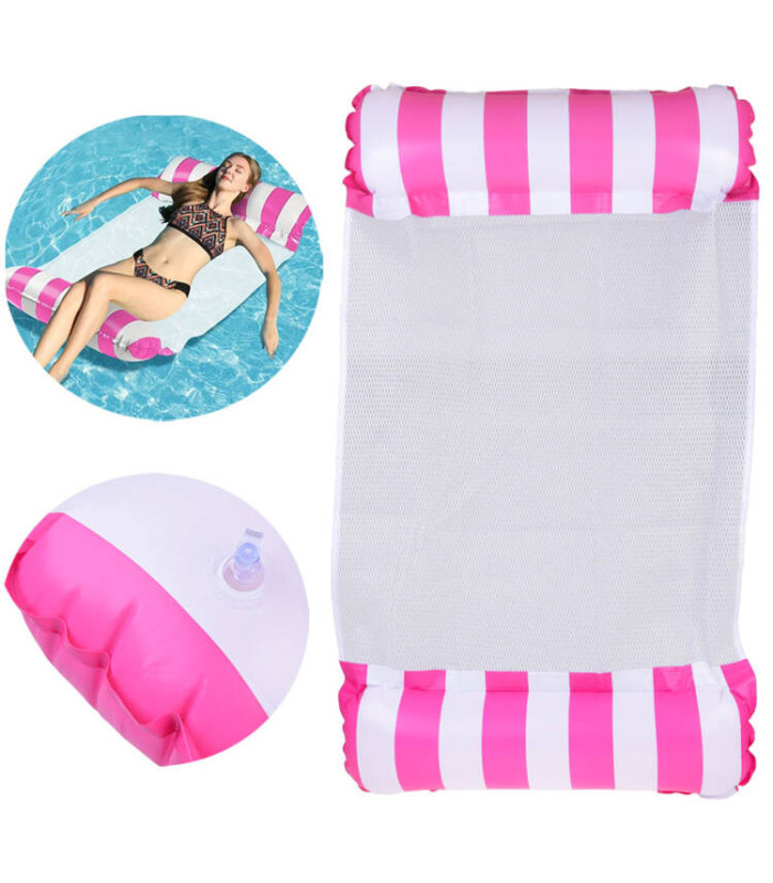 Pripučiamas rožinis plaukimo čiužinys vandens hamakas baseinui ir paplūdimiui