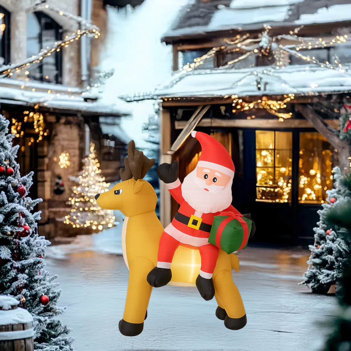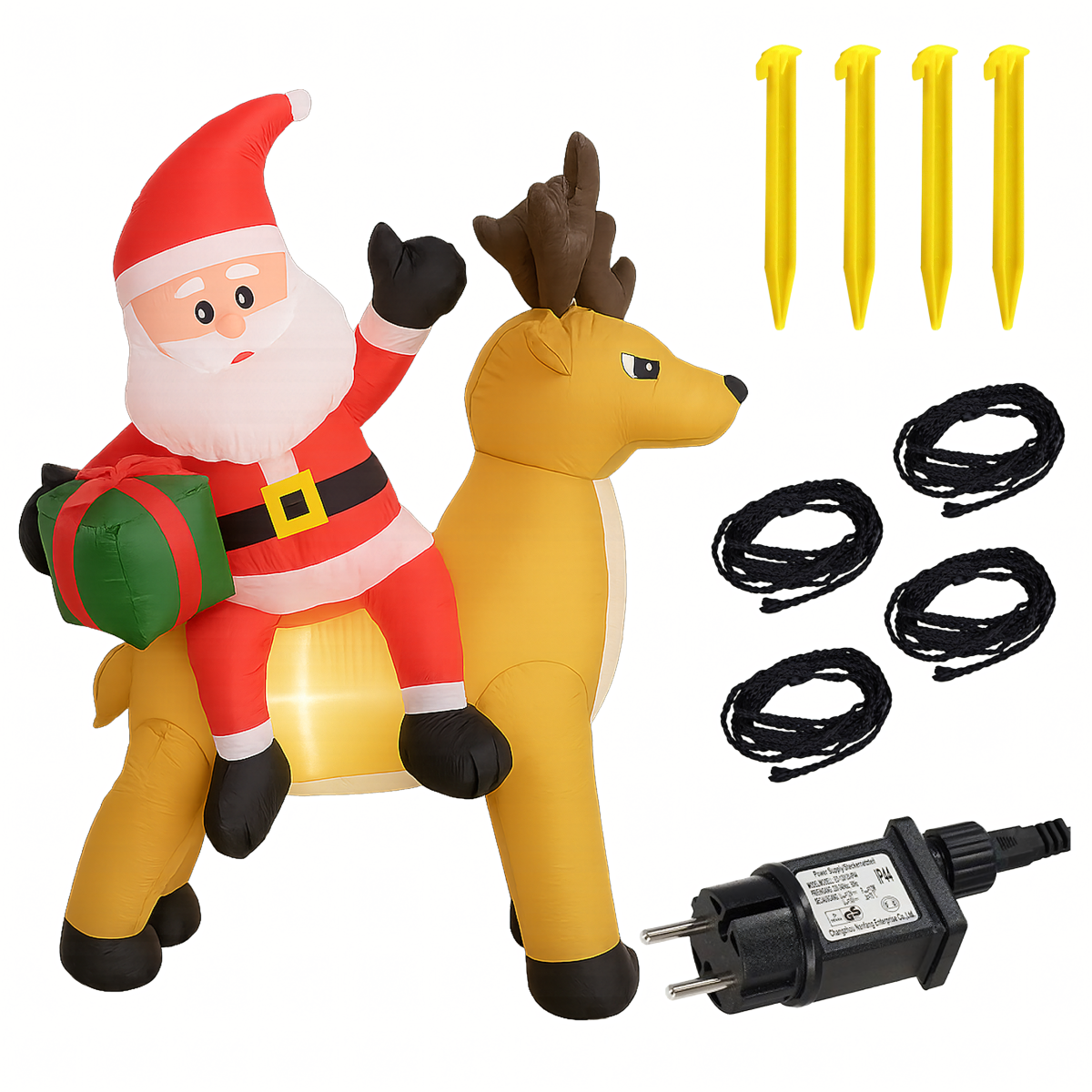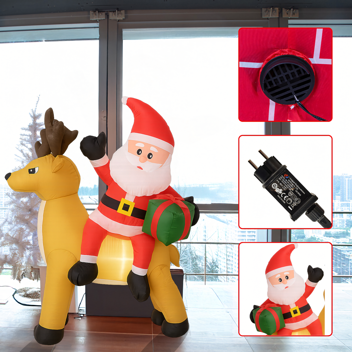 Pripučiama Kalėdų senelio su elniu dekoracija 1,5 m