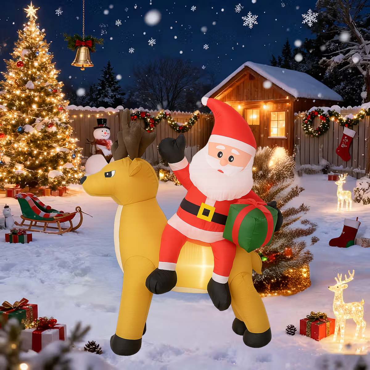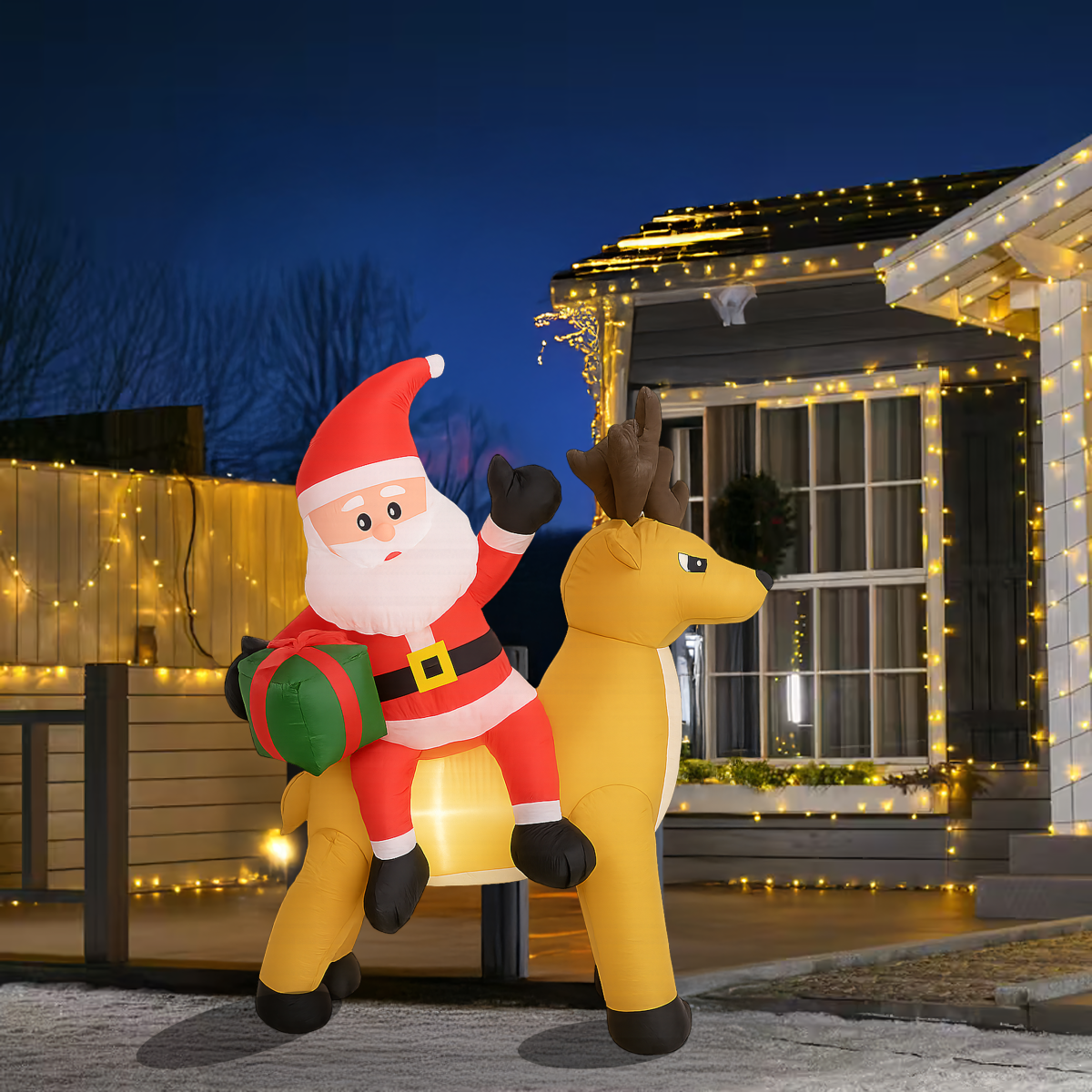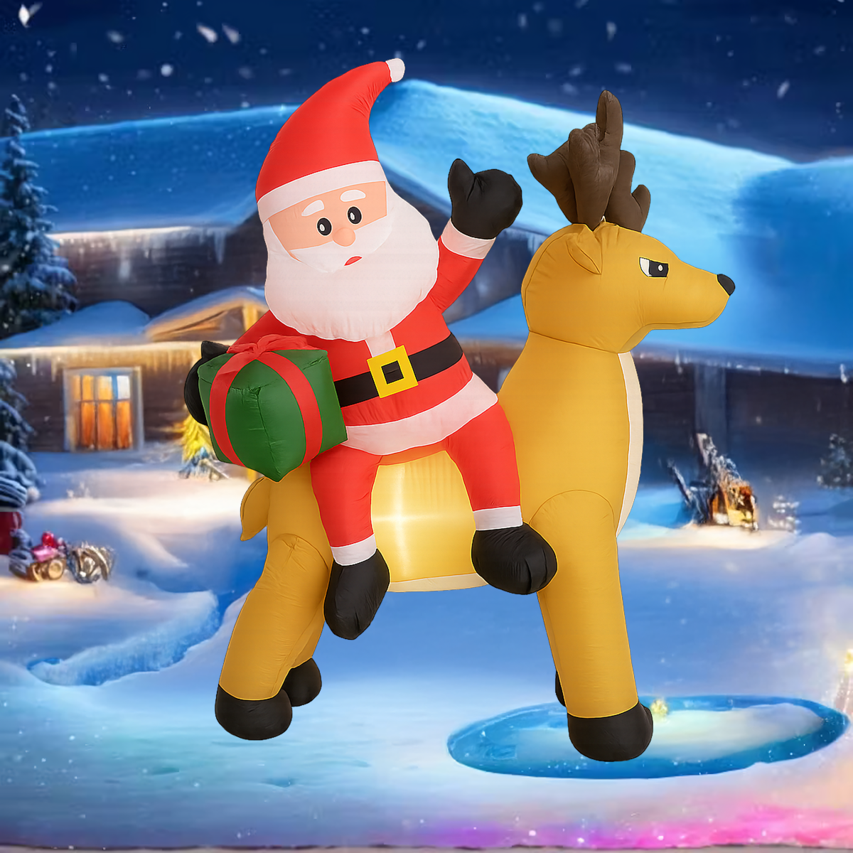 Pripučiama Kalėdų senelio su elniu dekoracija 1,5 m