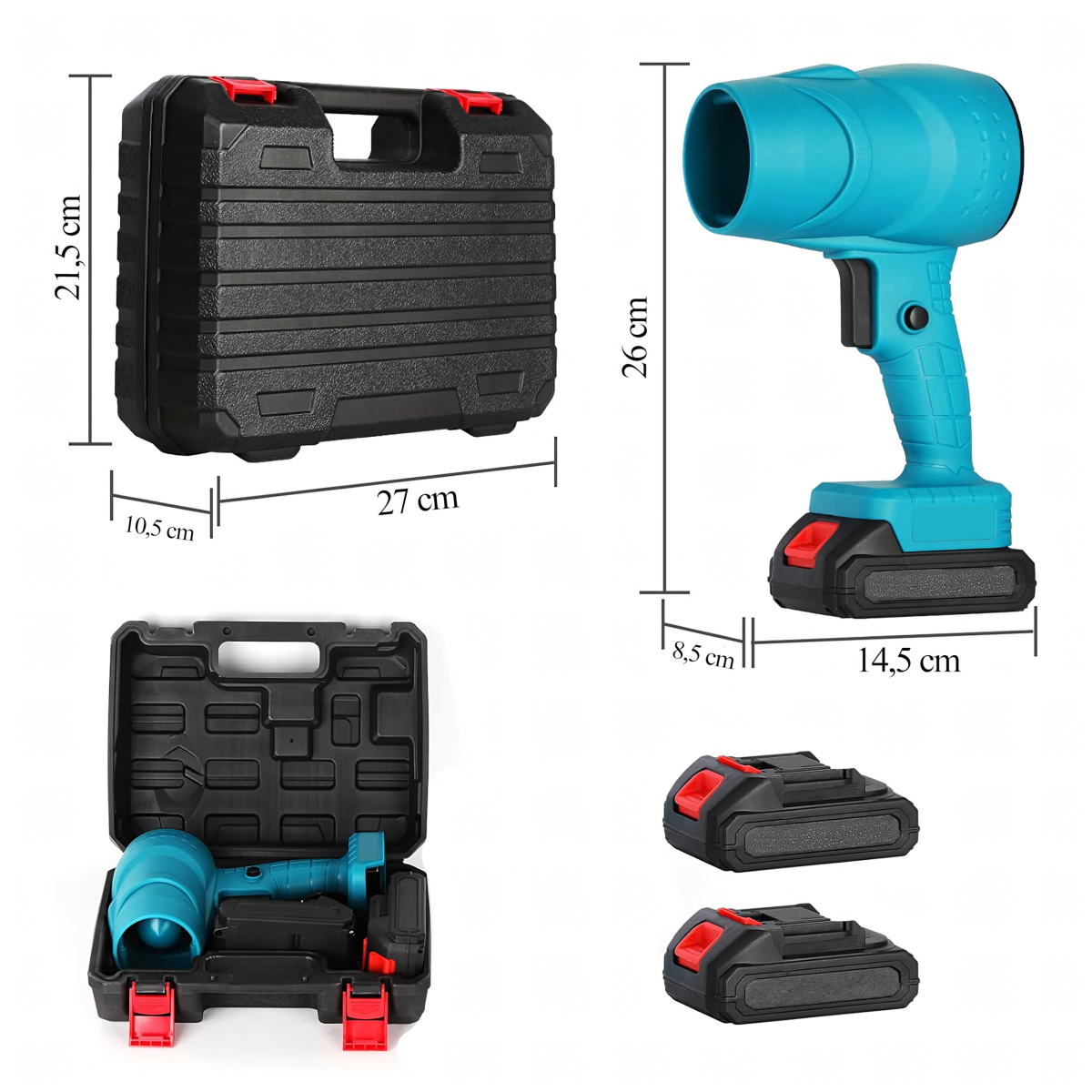 Akumuliatorinis oro pūstuvas 400W su 2 akumuliatoriais 21V (2×1300 mAh)