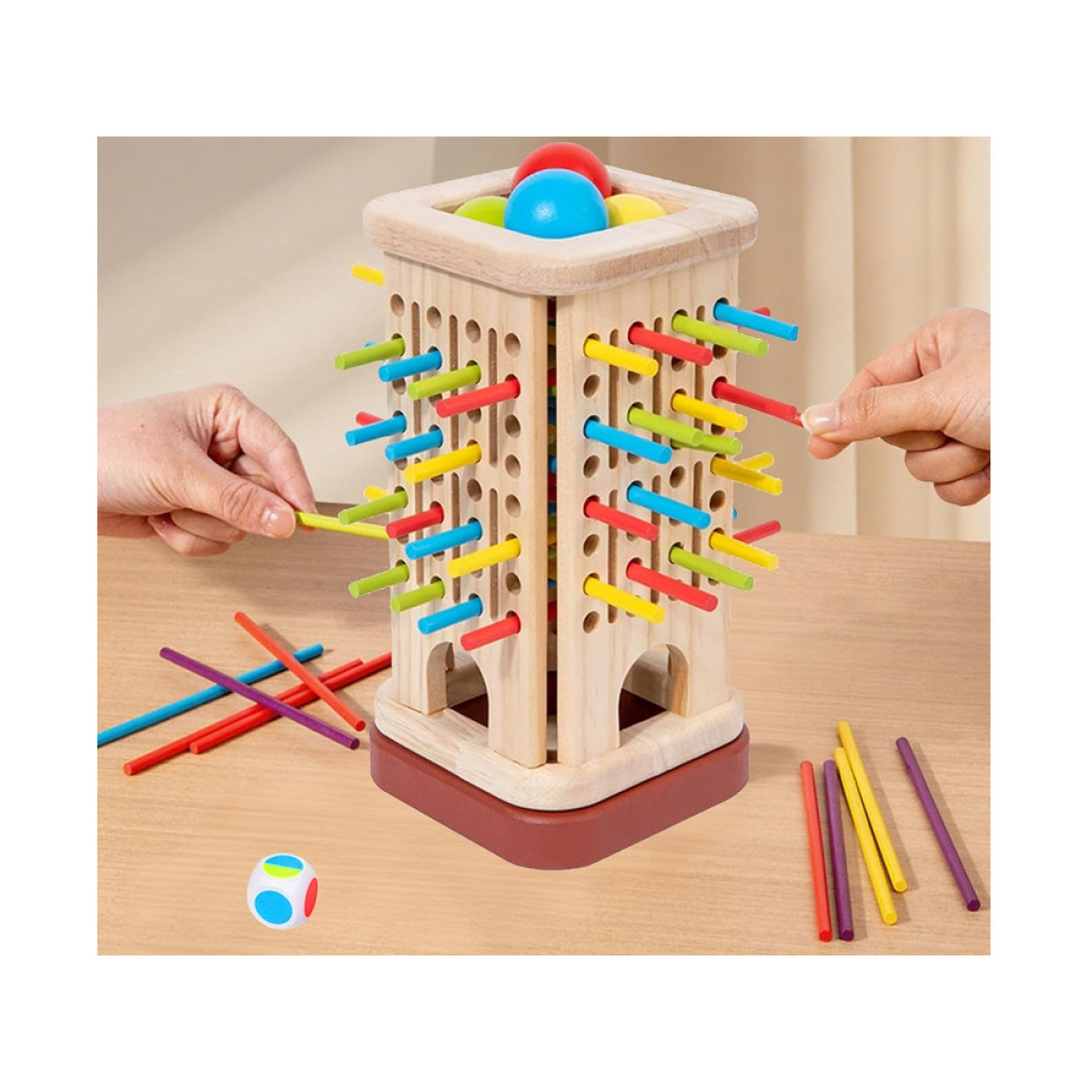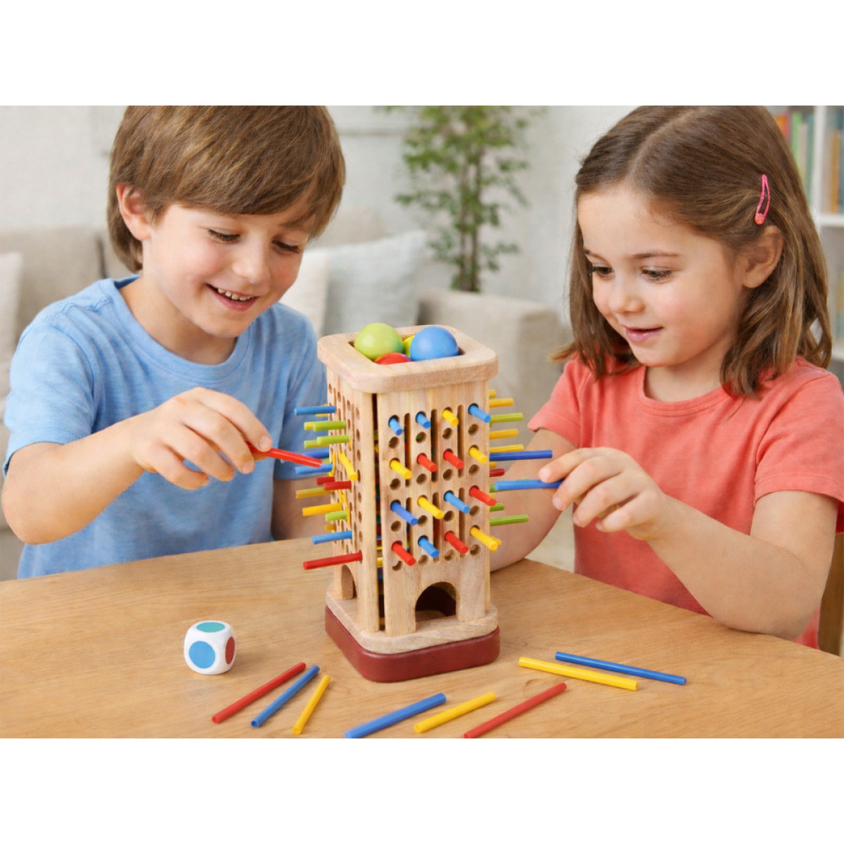 - strateginis žaidimas su kamuoliukais – statykite konstrukciją, dėkite kamuoliukus ir traukite pagaliukus pagal kauliuko parodytą spalvą. kiekvienas ėjimas čia labai svarbus.