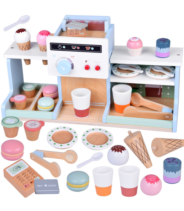 Medinė kavinė ledainė – žaislinis rinkinys vaikams