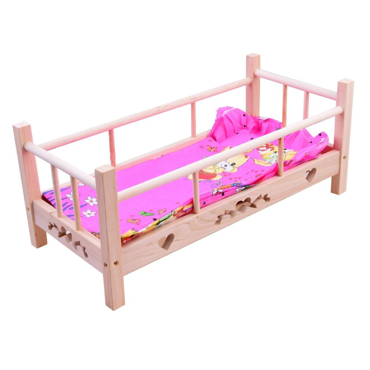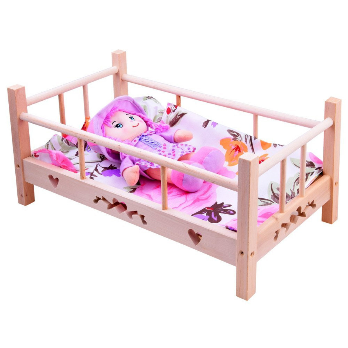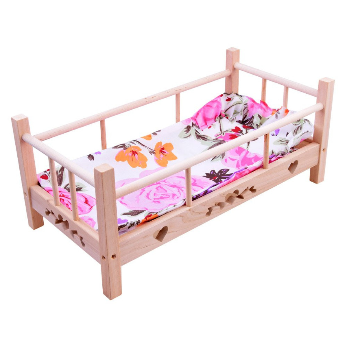 Medinė lovytė lėlėms, tinkanti iki 50 cm aukščio lėlėms, puikiai tiks kiekvienai mažajai mamytei.