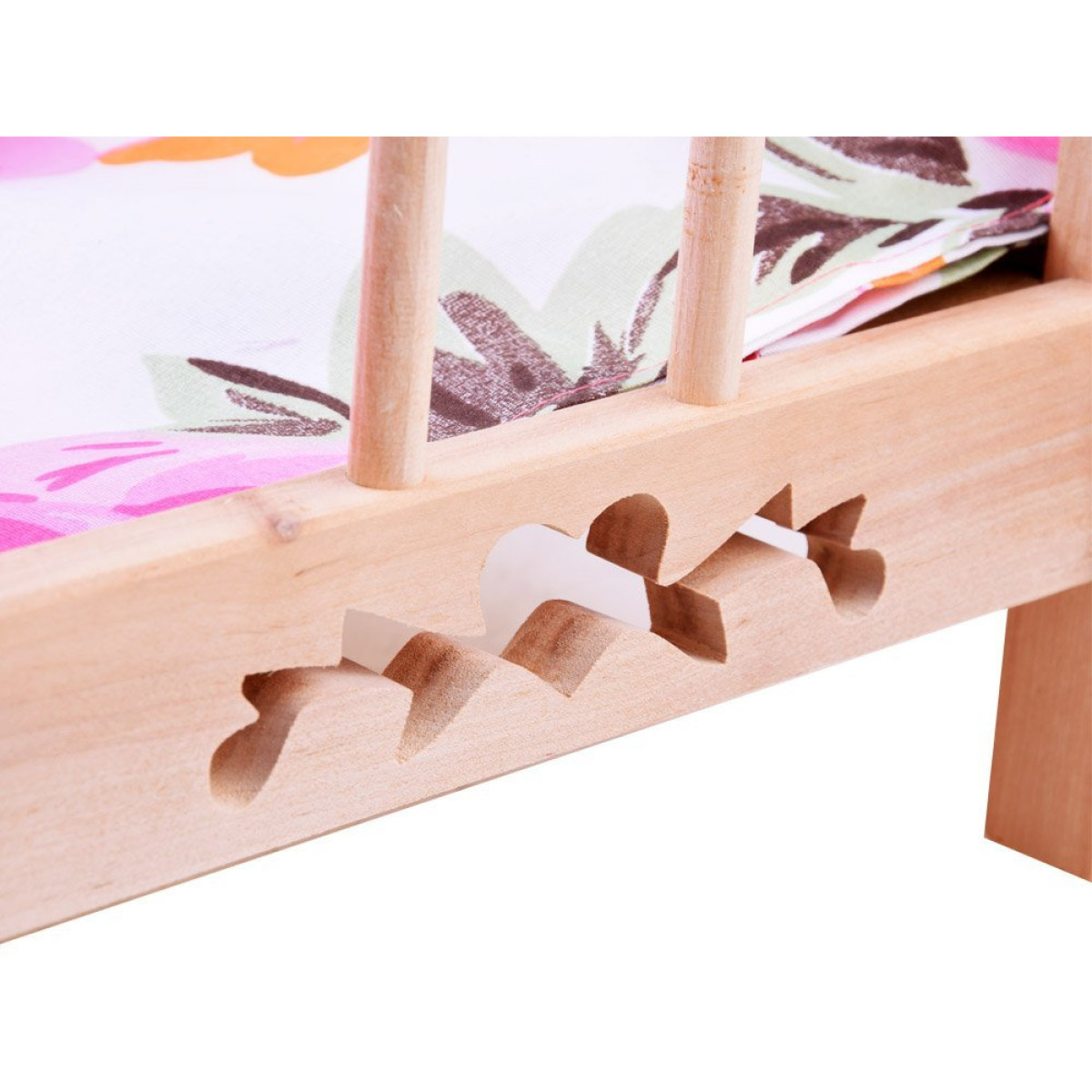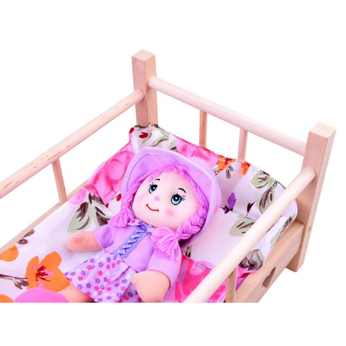 Lovytė yra pagaminta iš natūralaus, nemalinto medžio su tekstiliniu pagrindu ir šonais. Rinkinyje taip pat yra pagalvė ir antklodė lėlei ar meškiukui.