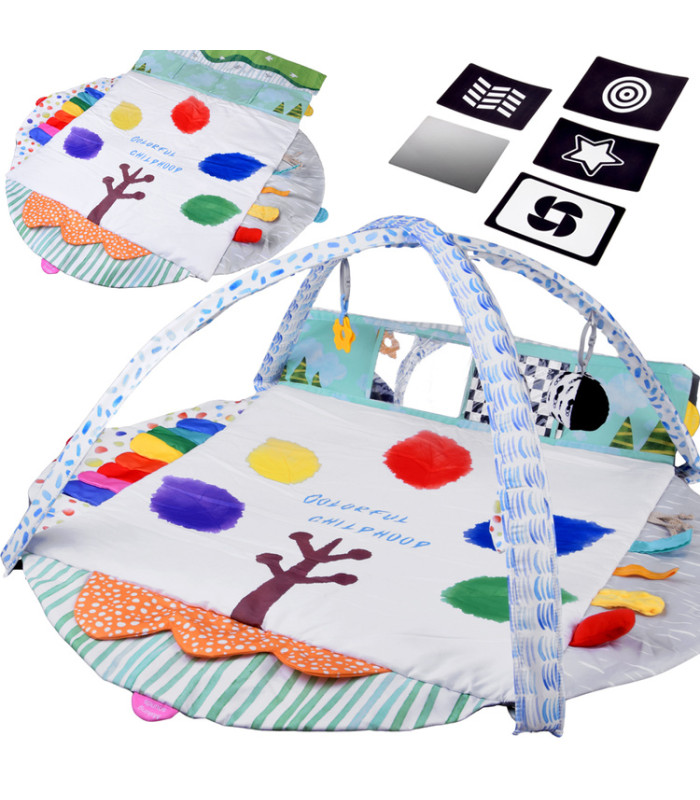 Didelė edukacinė kilimėlis kūdikiui su kontrastinėmis kortelėmis ir kramtukais