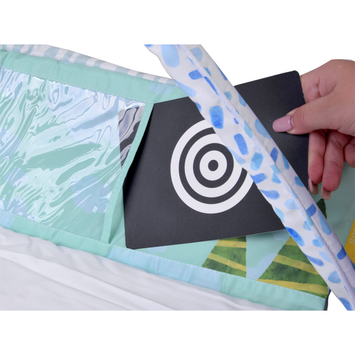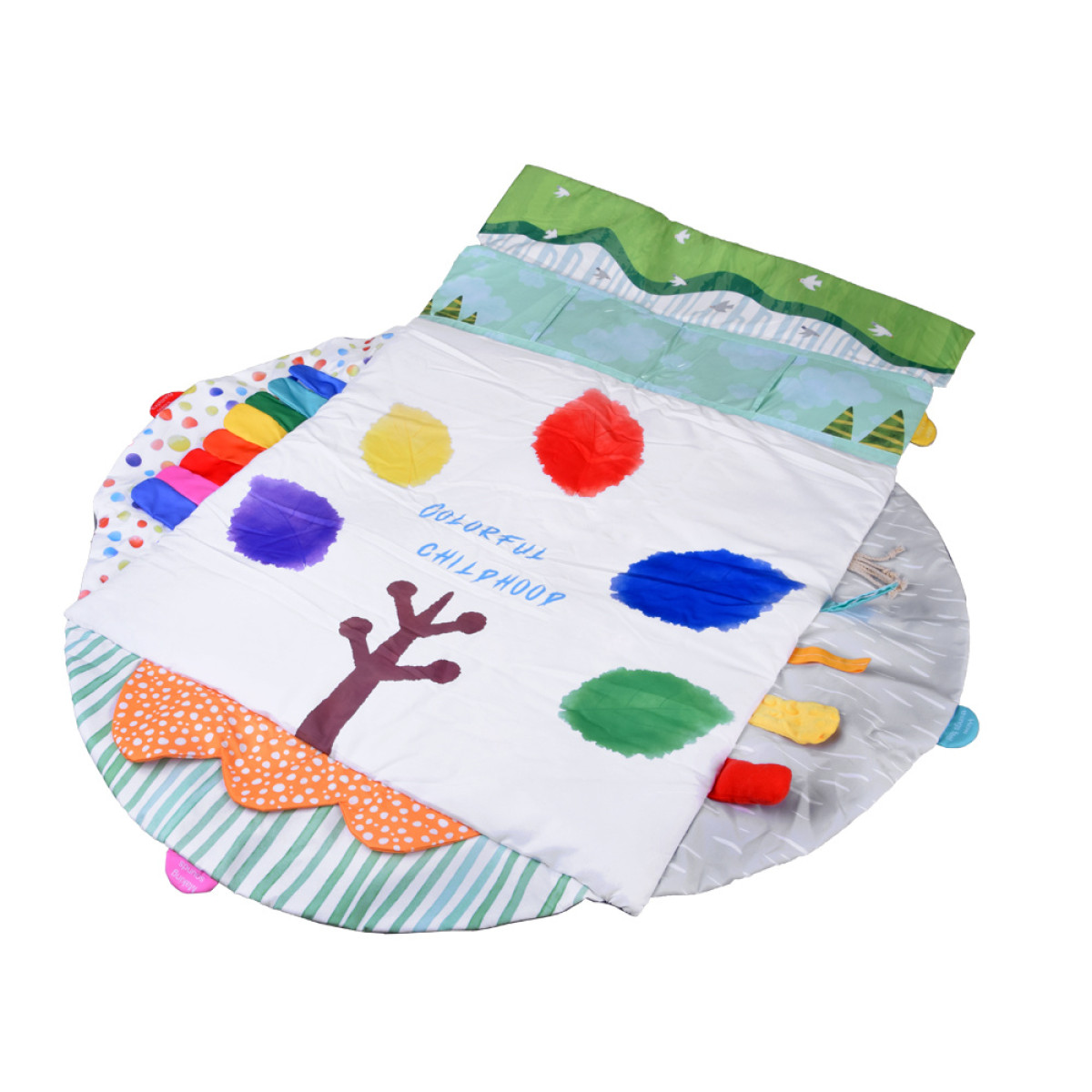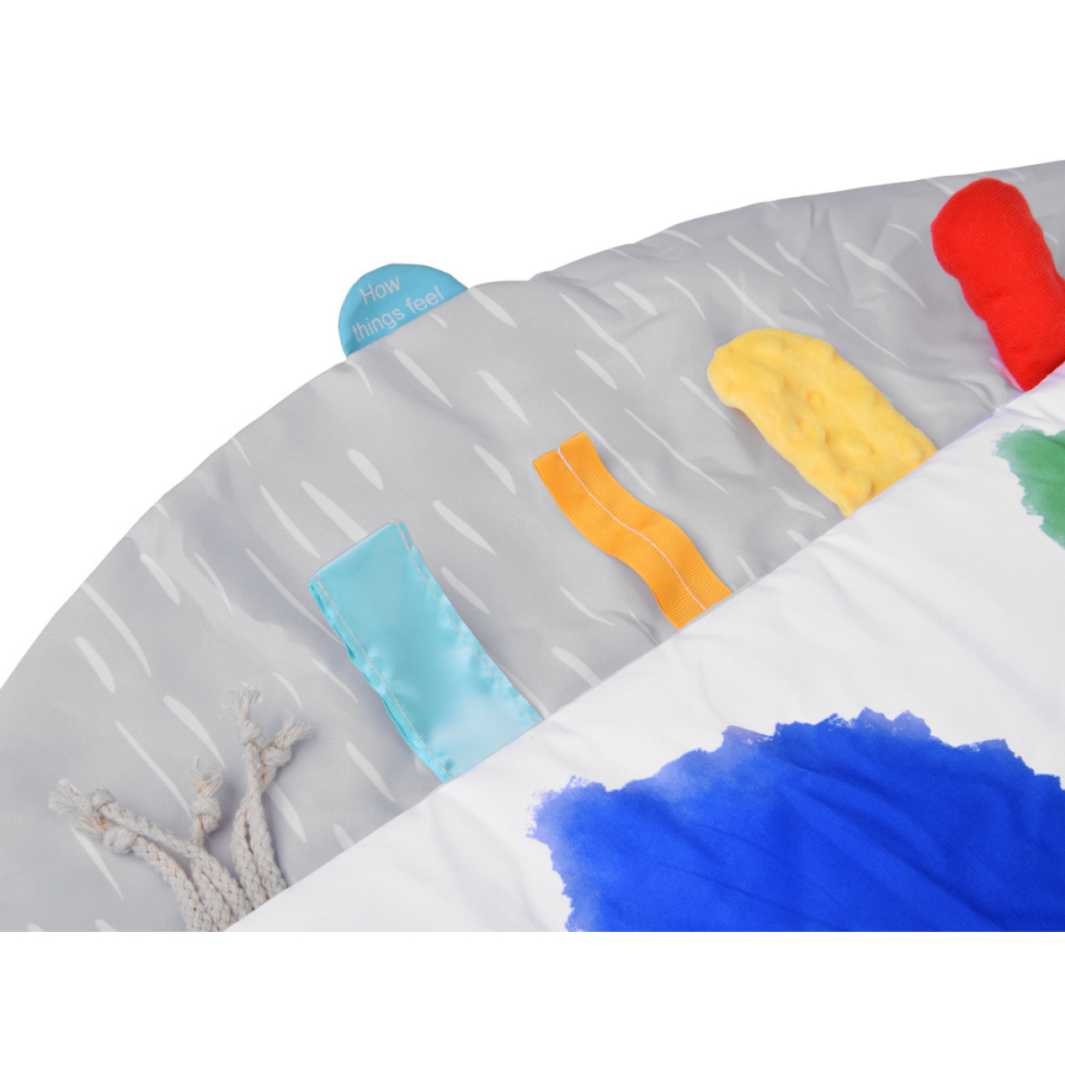 - Stimuliuojantis dizainas: kontrastingi raštai, šnairuojančios medžiagos ir spalvos pritraukia vaiko dėmesį, vysto regėjimo, klausos ir lytėjimo suvokimą.