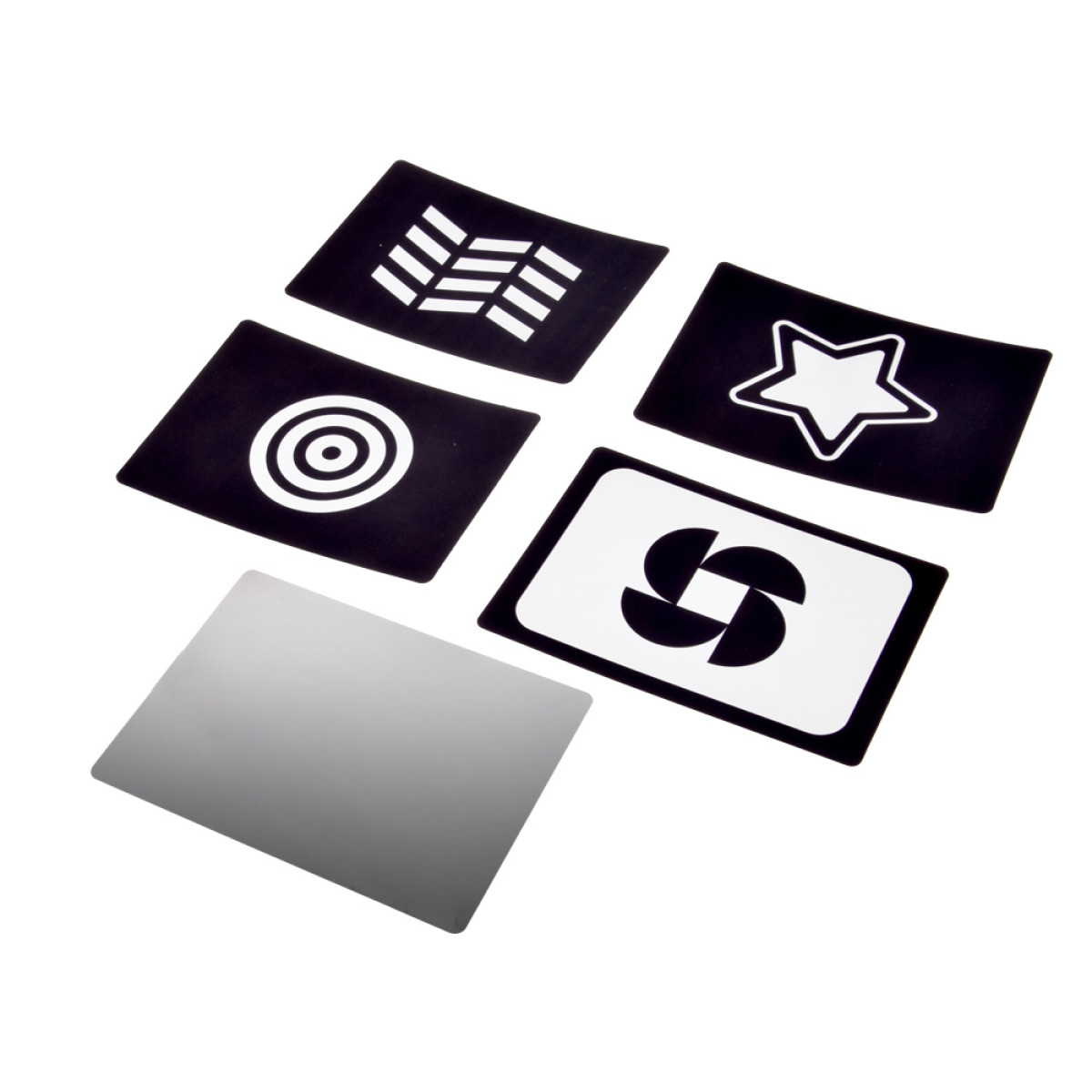 - Rinkinį sudaro: kilimėlis, 2 lankai, interaktyvūs pakabukai (pvz., veidrodėlis, kontrastinės kortelės, kramtukai, minkštas kontrastinis kamuoliukas, žvėgždė, šnairuojančios dalys).