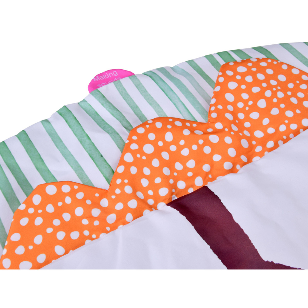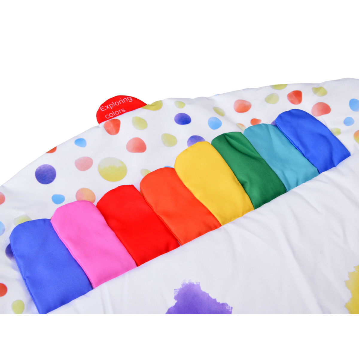 Šis didelis, apvalus ir itin minkštas kilimėlis yra pagamintas iš ypač švelnios medžiagos, užtikrinančios kūdikiui komfortą ir saugumą gulint, sėdint ar ropojant. Puikiai tinka jautriai kūdikio odai.