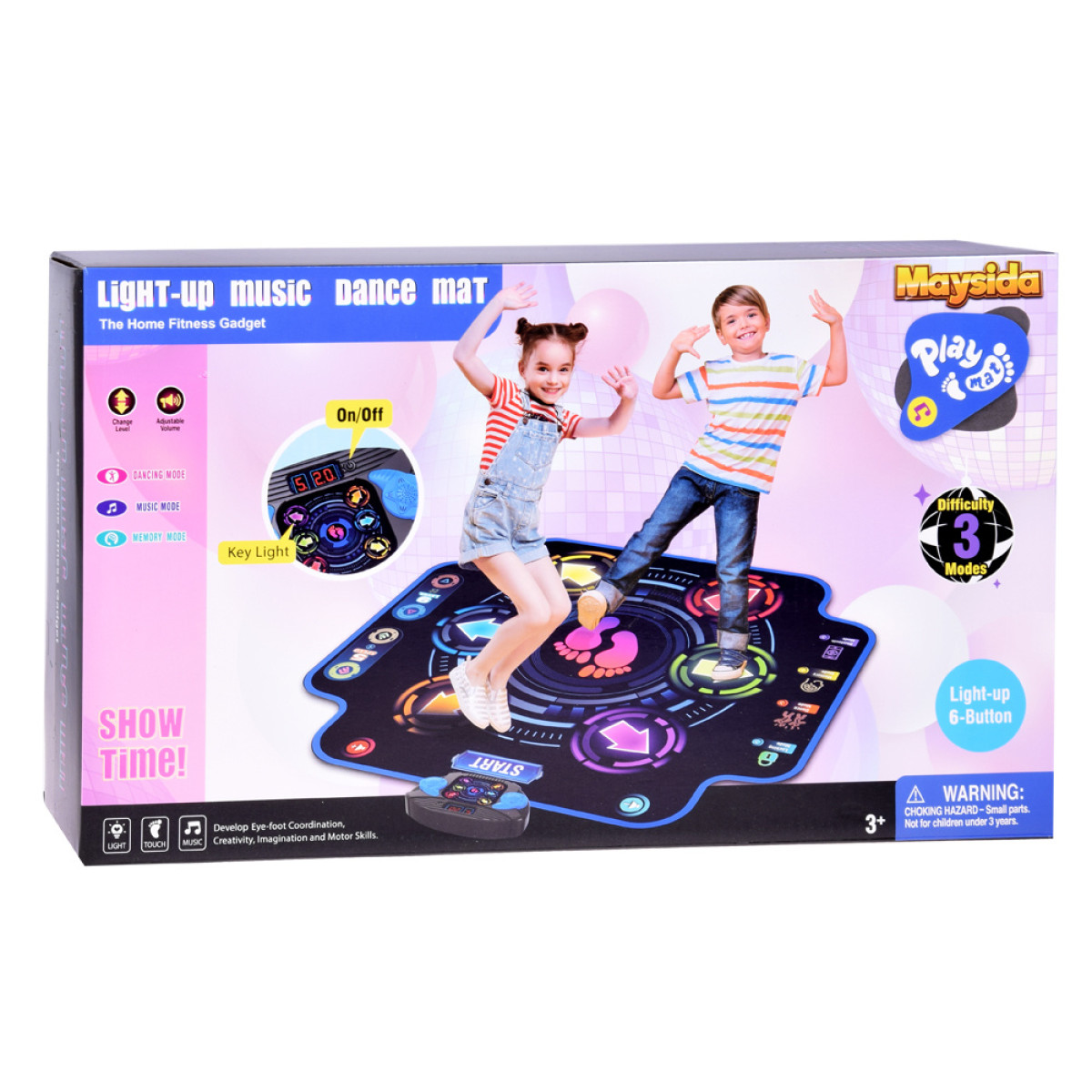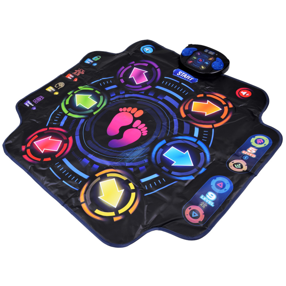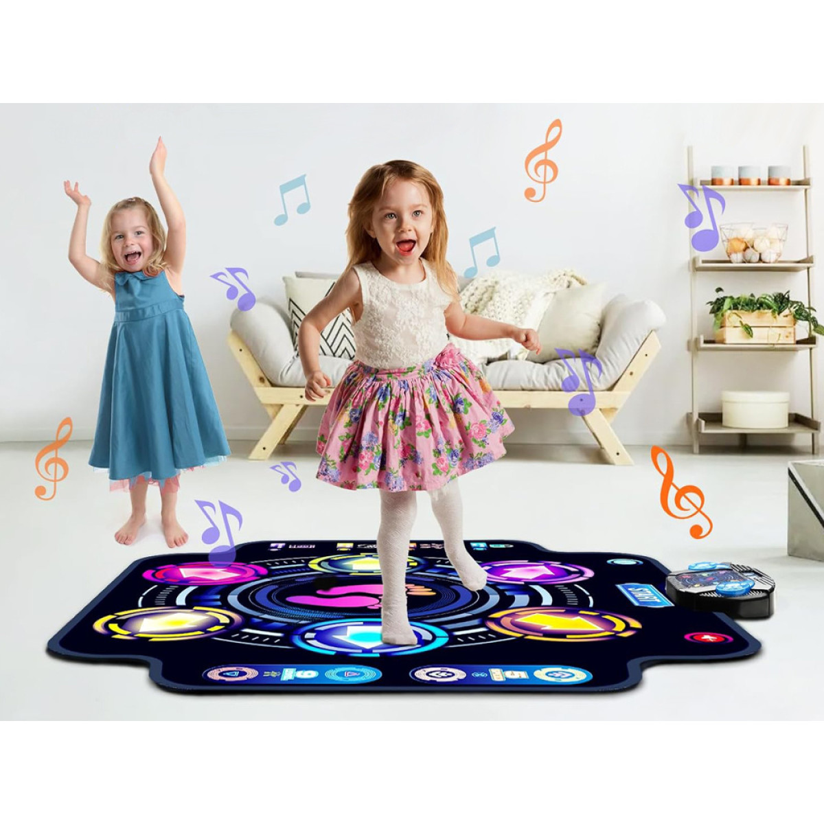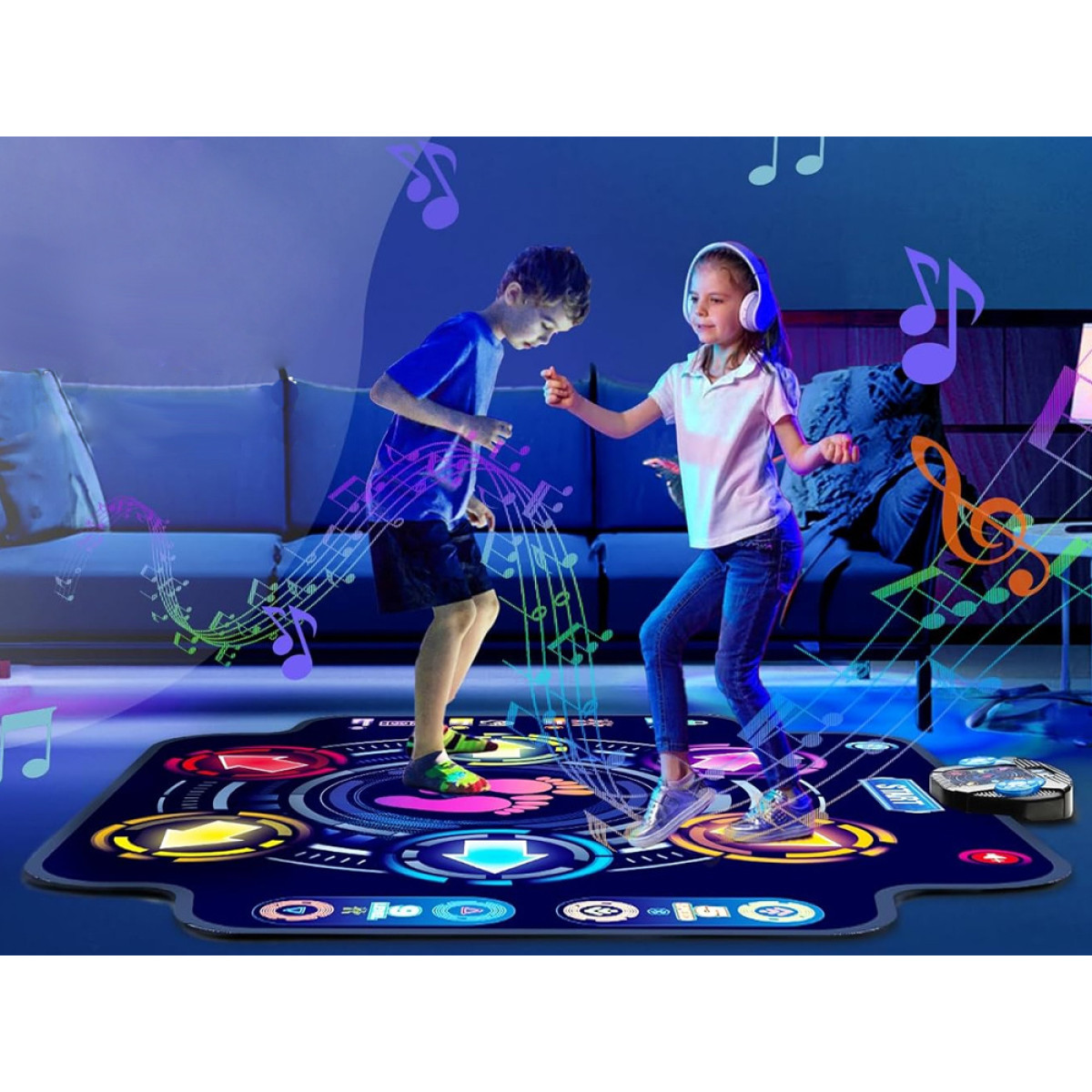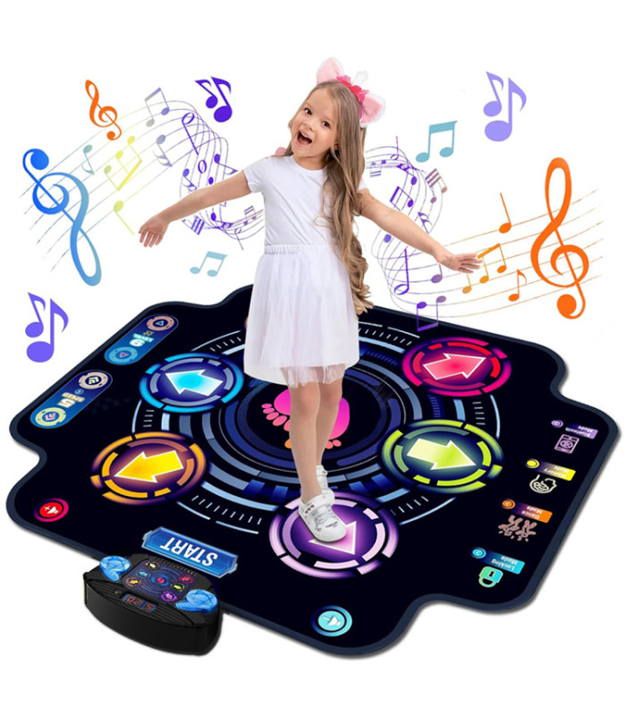 Muzikos šokio aikštelė yra puikus pasirinkimas vaikų šventėms, gimtadieniams ar kaip pramogos būdas namuose, suteikiantis kasdienę sveiko judėjimo dozę. Ją galima lengvai išdėstyti ant lygios plokštumos su laisva erdve šonuose, kad būtų galima laisvai judėti pagal muziką. Po linksmybių, šokio aikštelę galima susukti ir įdėti į dėžę, taip taupant vietą.