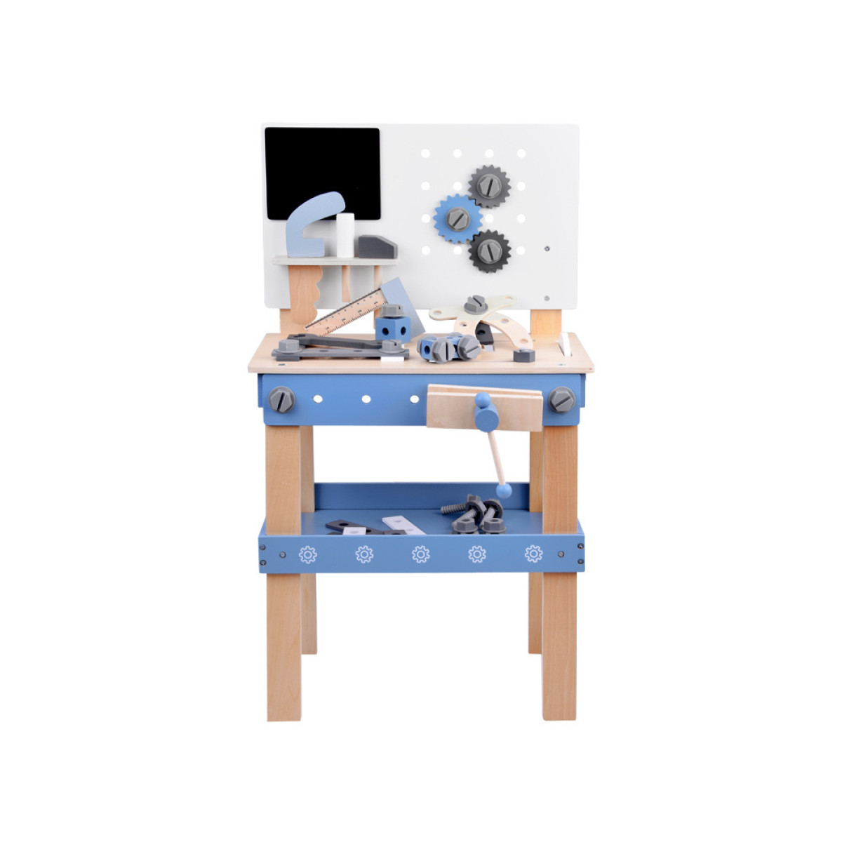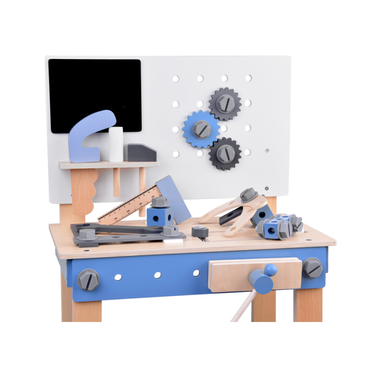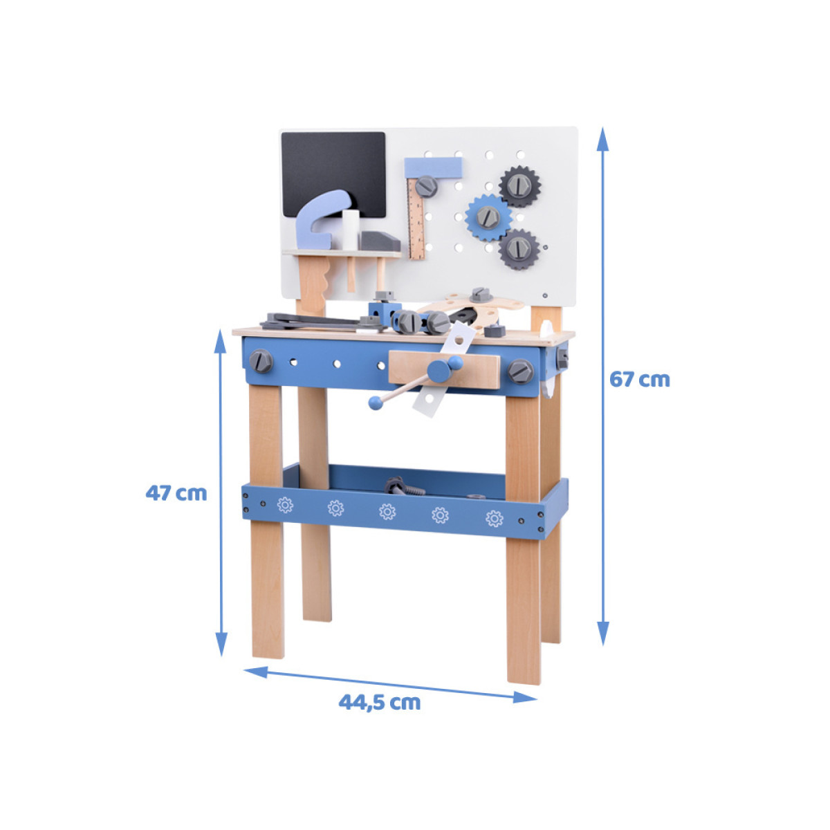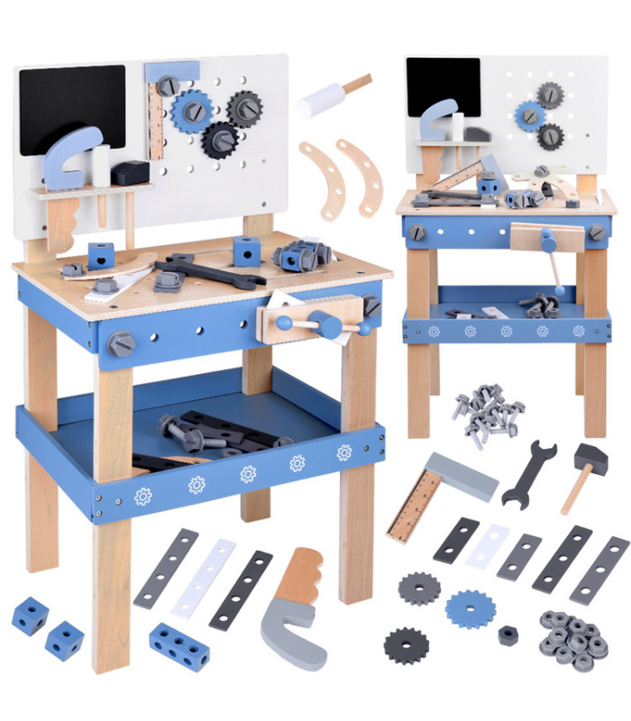 Šis medinis dirbtuvių rinkinys yra puiki edukacinė žaislas, skirta mažiesiems meistrams. Jis sukurtas siekiant ugdyti vaikų rankų miklumą, vaizduotę ir supažindinti juos su įrankių bei meistravimo pasauliu. Pagamintas iš tvirto medžio, rinkinys yra patvarus, saugus ir estetiškas, o jo natūralios spalvos kartu su mėlynomis detalėmis patrauks kiekvieno vaiko dėmesį.