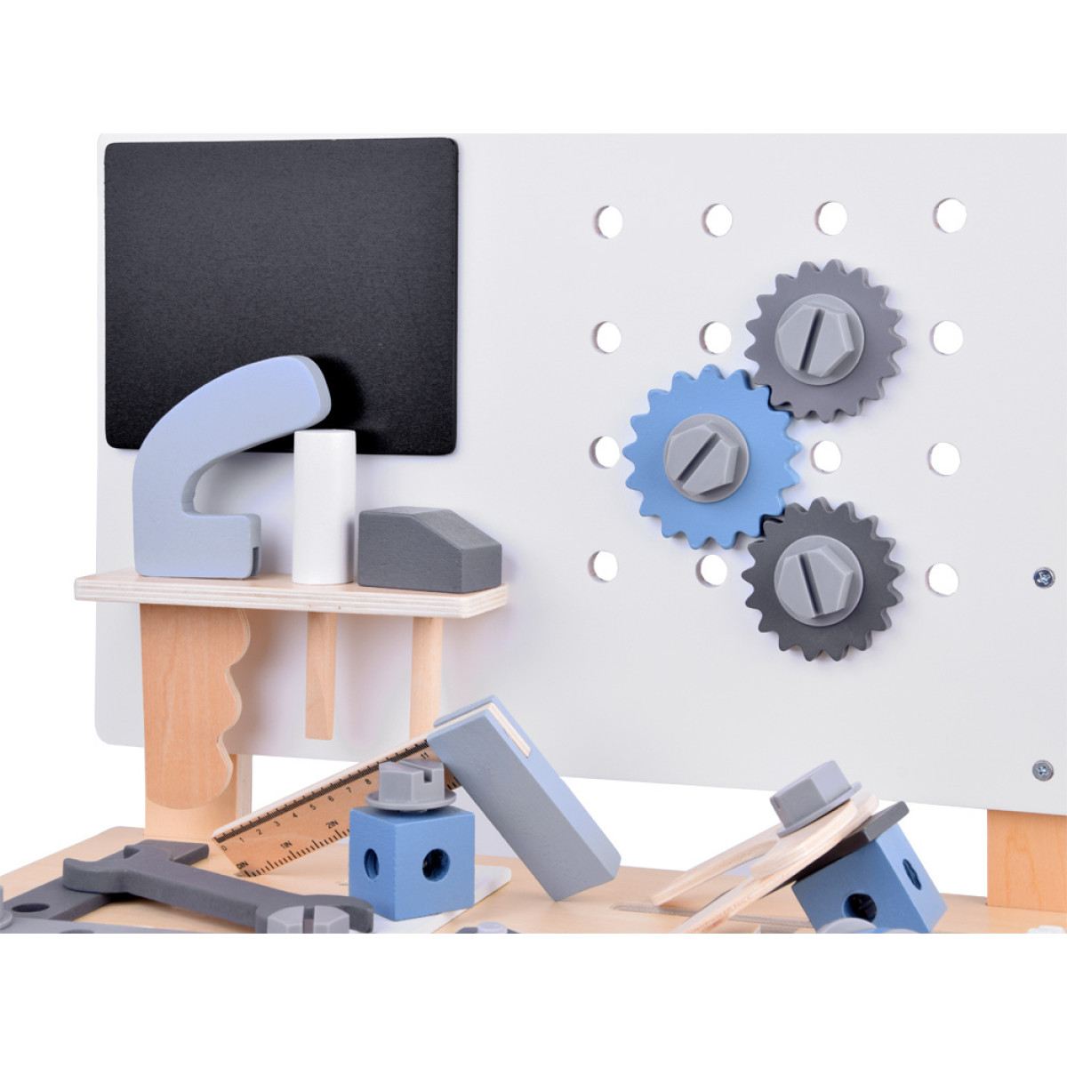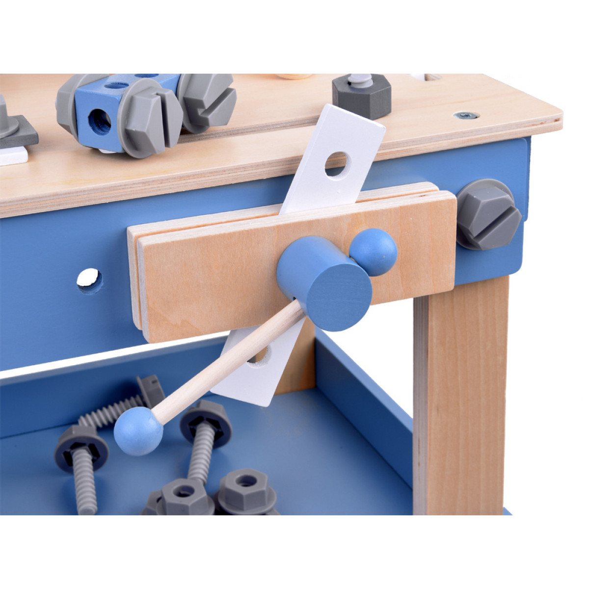 Puikus pasirinkimas mažiesiems meistrams. Šis žaislas ne tik suteiks valandų smagios veiklos, bet ir lavins vaikų rankų miklumą, vaizduotę ir kūrybingumą. Imituojant tėčio ar senelio remonto darbus, vaikai patirs nuostabią nuotykį. Mediniai žaislai yra ilgaamžiai ir ekologiški, o jų aukšta kokybė garantuoja saugumą ir ilgaamžį naudojimą.