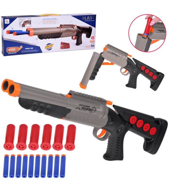 Didelis šautuvas dvivamzdis vamzdis su putplasčio šoviniais