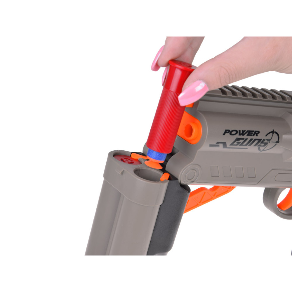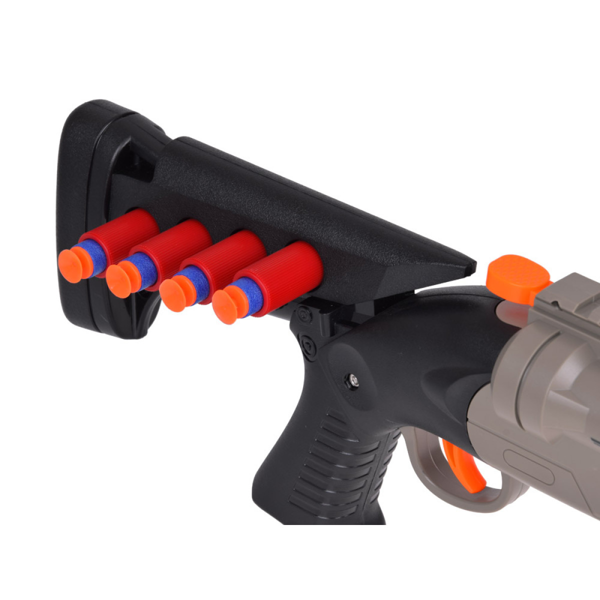 Šis nuostabus dvivamzdis šautuvas yra tikras atradimas visiems šaudymo žaidimų gerbėjams. Masinis šautuvas pagamintas iš aukštos kokybės plastiko, ypatingai rūpinantis detalėmis. Pilkai juoda spalvų gama suteikia realistiškumo, o kokybė ir puikus dizainas tikrai sužavės kiekvieną mažą karinių žaidimų mėgėją.