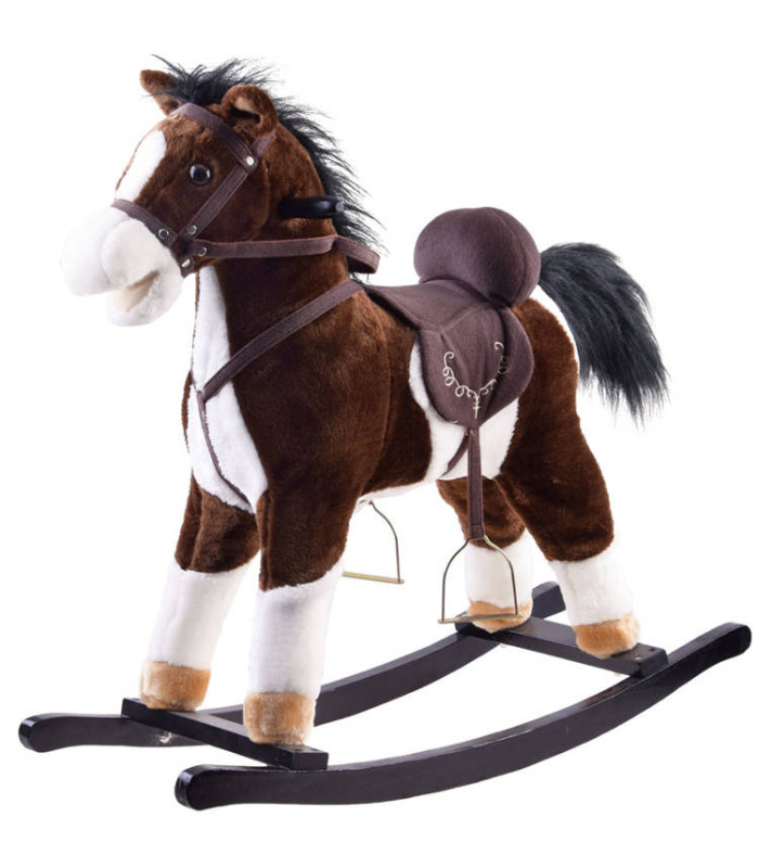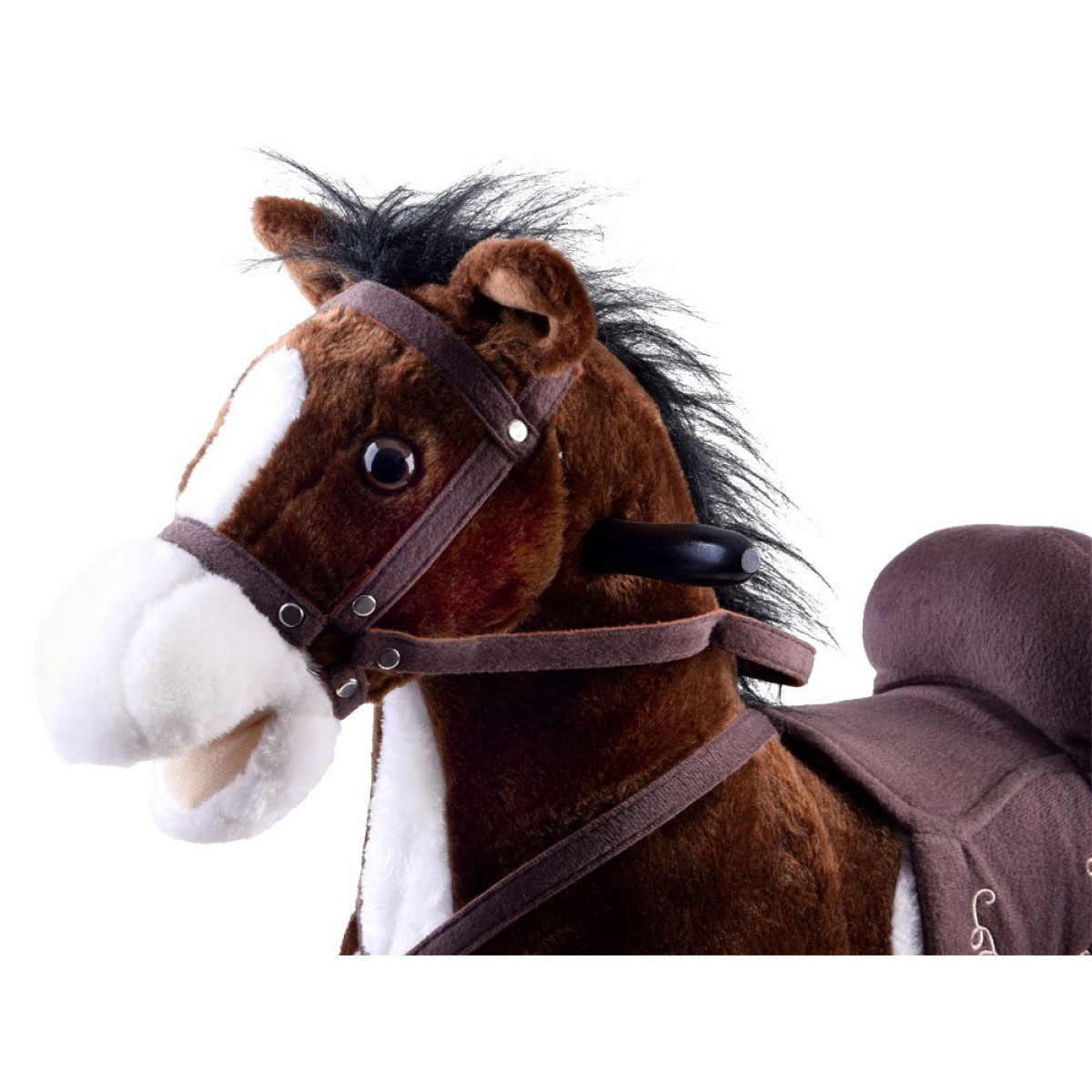Didelis tamsiai rudas sūpuoklinis arkliukas su garsais ir judančia uodega