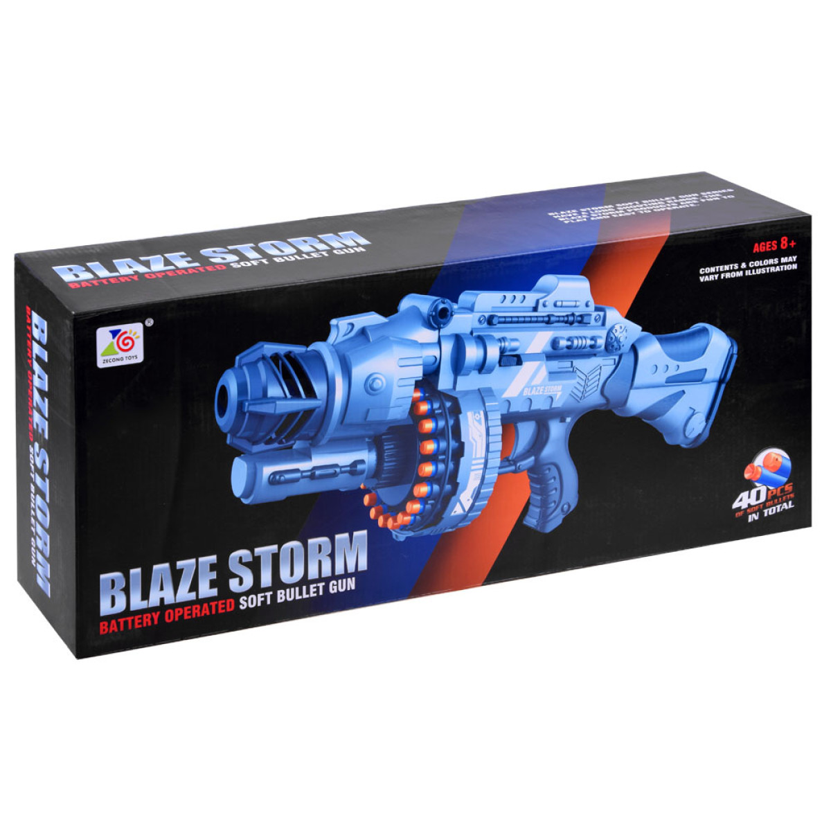 Didelis pistoletas Blaster yra puikus pasirinkimas strėlinių žaidimų mėgėjams. Jis turi talpų, besisukantį magaziną, kuriame telpa net 20 piankinių šovinių. Po kiekvieno šūvio automatiškai persikrauna, užtikrinant ilgą ir įdomią pramogą. Pistoletas pagamintas iš plastiko, o šoviniai - iš piankos su gumine galvute. Norėdami užtaisyti magaziną, pakelkite judančią šautuvo vamzdžio dalį, paslinkdami kairėje esančią apsauginę užraktą, ir įdėkite piankinius strėles. Strėlės lieka savo vietoje net intensyvių judesių metu. Puiki ginklų konstrukcija leidžia dar daugiau pramogų dėka įmontuotų ritinėlių, kurie padidina šovinio nuotolį iki maždaug 12 m. Pakanka užtaisyti ginklą ir įjungti jį kairėje rankenos pusėje esančiu jungikliu. Žaislas maitinamas 6 x 1,5 V AA baterijomis (nėra komplekte). Blasteris padarys įspūdį tiek mažiems, tiek dideliems naudotojams, šaudo tiksliai ir toli. Pridedami strėlių su siurbtukais, kurie prilimpa prie lygaus paviršiaus. Kiekvienas šaudymo varžybų entuziastas turintis tokią ginklą galės treniruotis taikymą arba rengti varžybas su draugais.