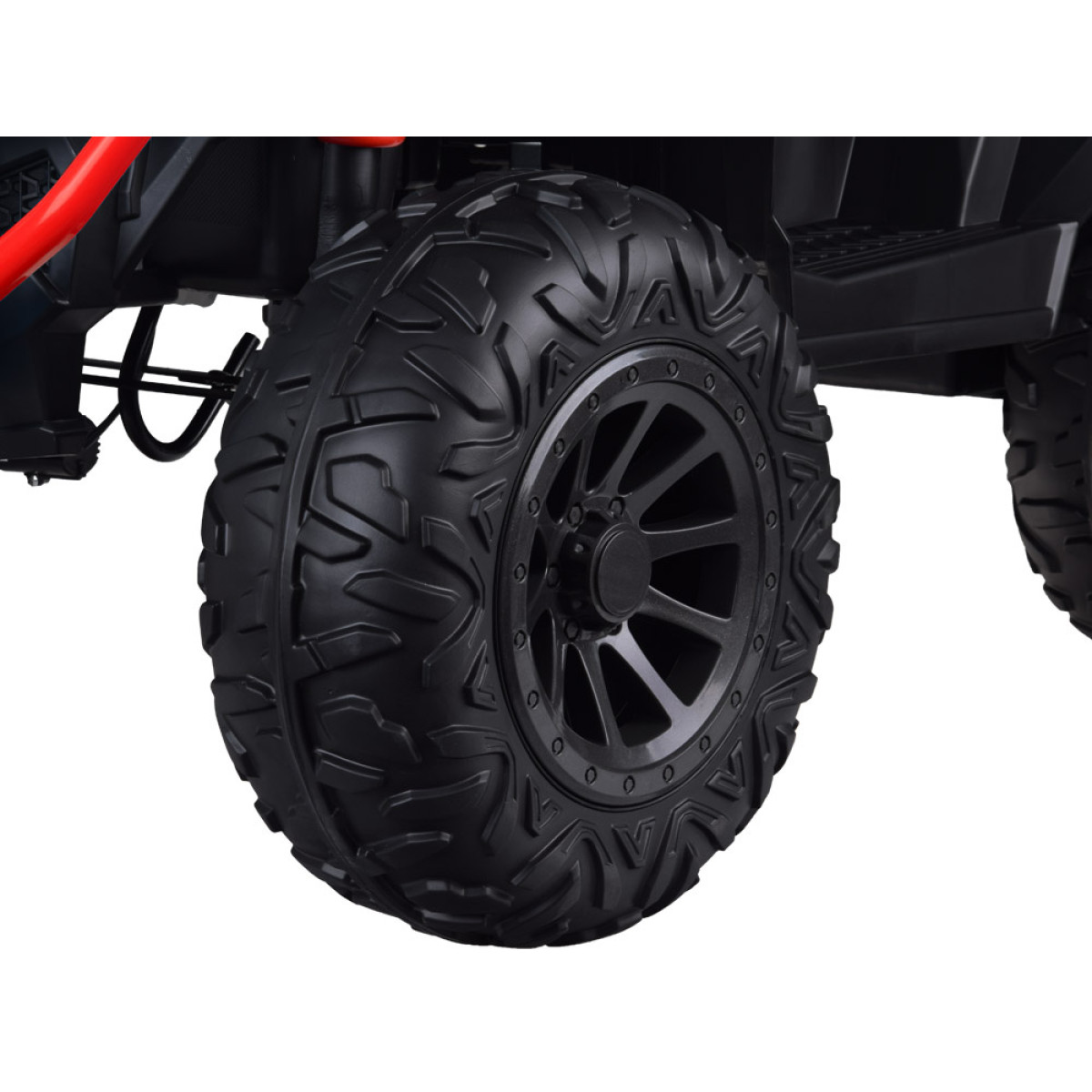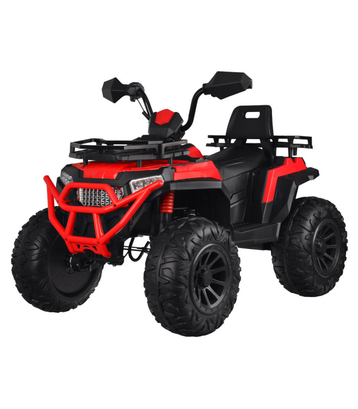 Didelis ir galingas elektrinis keturatis - tai vaikų svajonė. Galingas transporto priemonė su dideliais EVA ratais ir amortizuota galine ašimi suteiks daug džiaugsmo važinėjant.