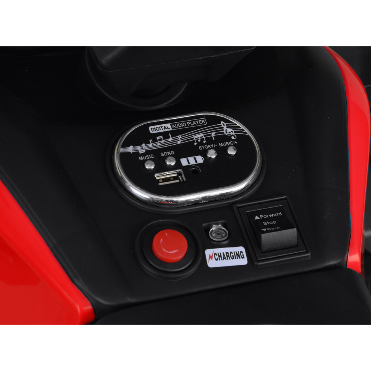 - MP3 ir USB jungtis, kurios leidžia vaikui klausytis mėgstamos muzikos važiuojant.