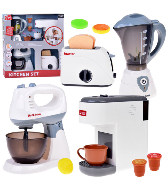didelis žaislinių virtuvės prietaisų rinkinys su mikseriu, skrudintuvu, blenderiu ir kavos aparatu za5577