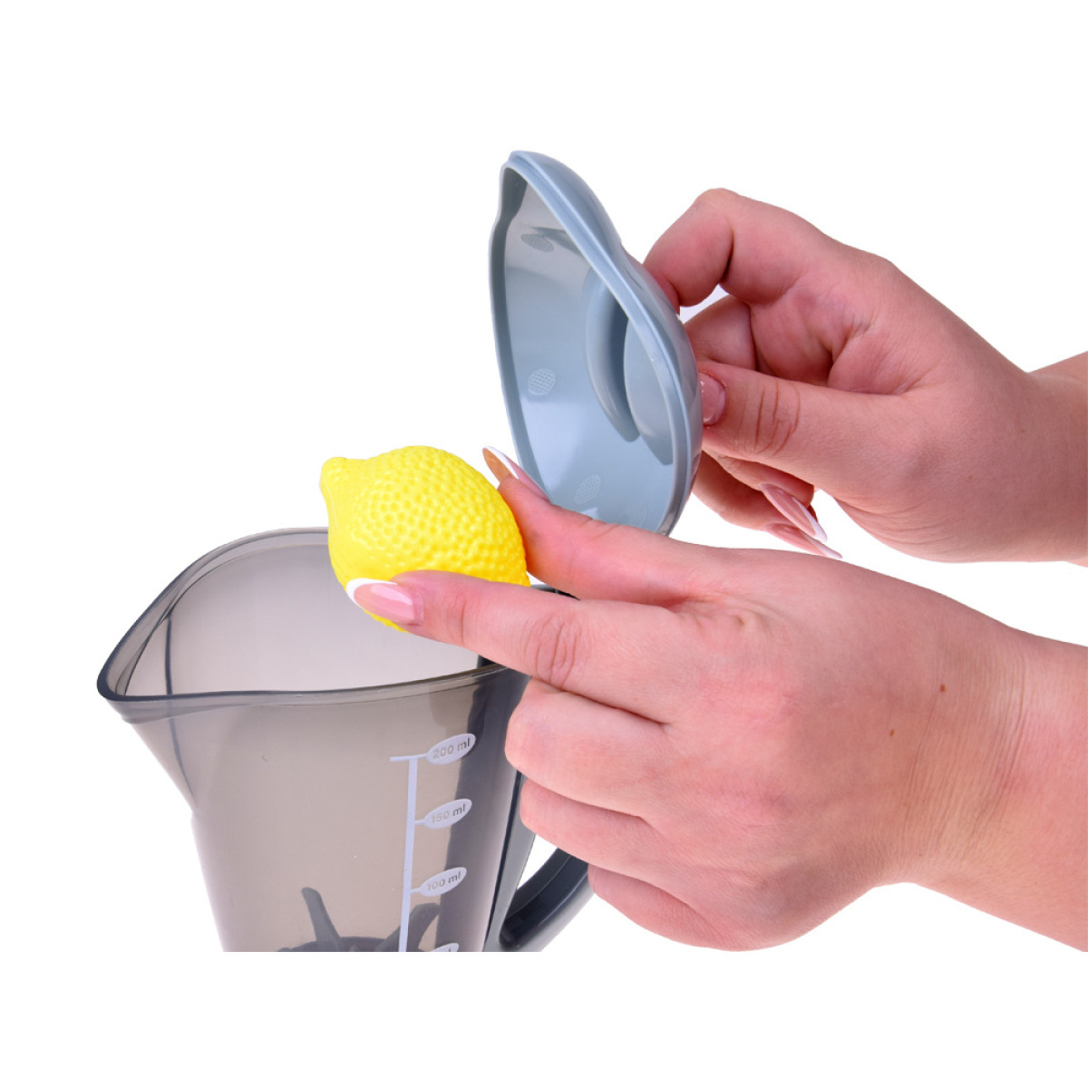 blenderį sudaro pagrindas ir uždaromas skaidrus indas su matavimo žyma. uždėjus indą ant pagrindo ir įjungus prietaisą, viduje sukasi mentelės, o veikimą lydi garsas. papildomai po mygtuku užsidega raudona lemputė.