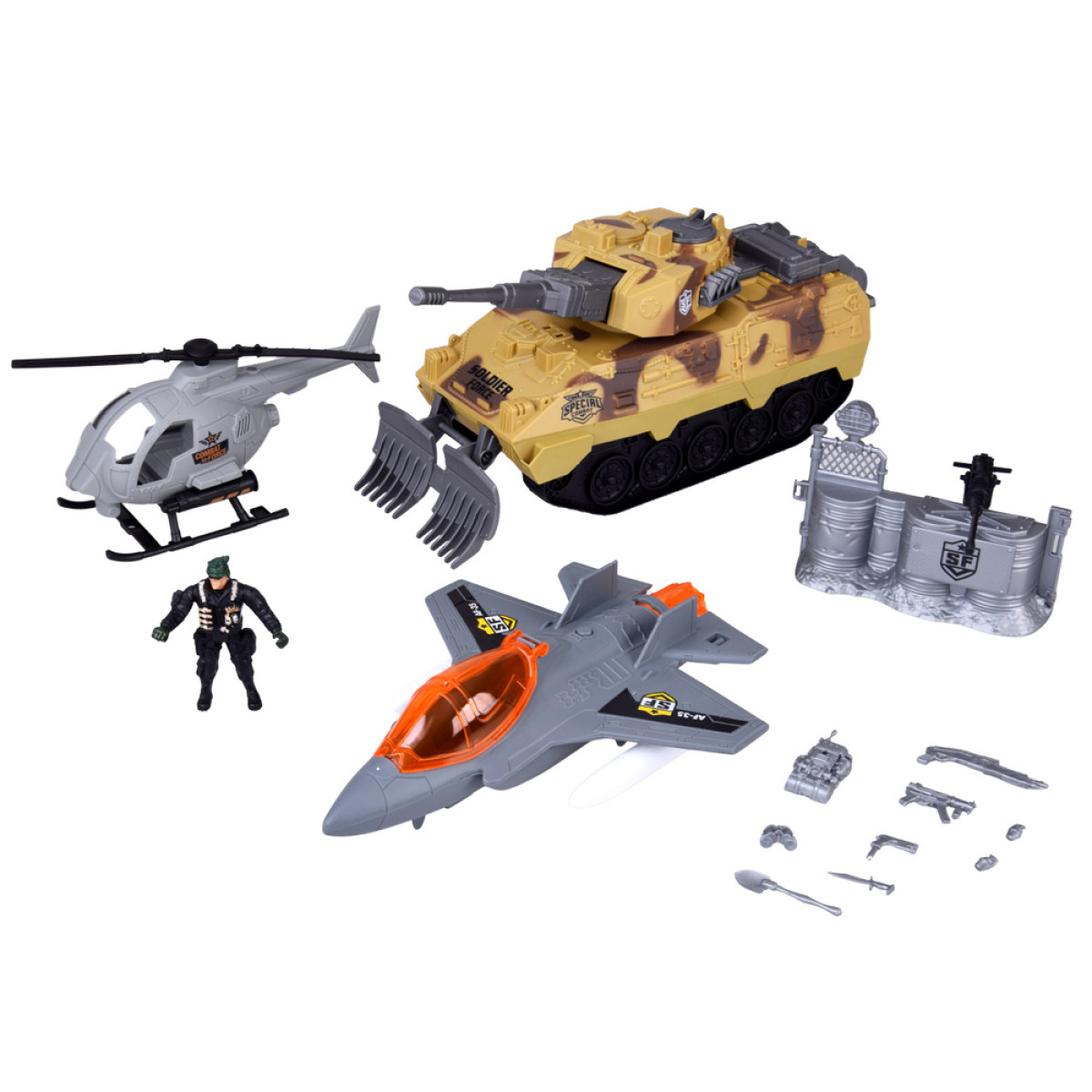 Didelis karinis rinkinys tankas naikintuvas sraigtasparnis + kareivis ZA5752