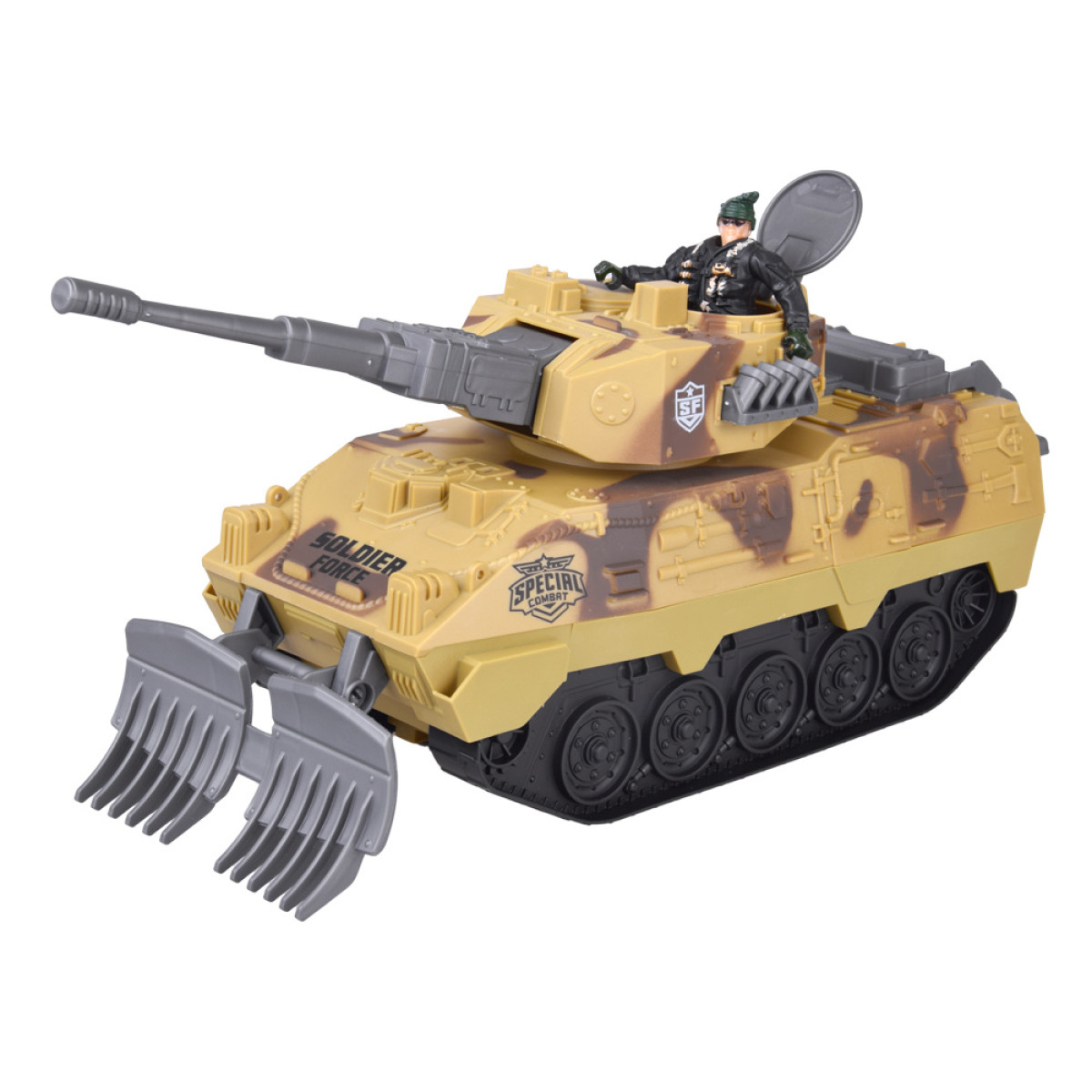 - Tankas su stumdytuvu, besisukančia bokšteliu, atidaromu liuku (vietos kareivio figūrėlei) ir judančiu vamzdžiu – aukštyn/žemyn – realistiškiems manevrams.
