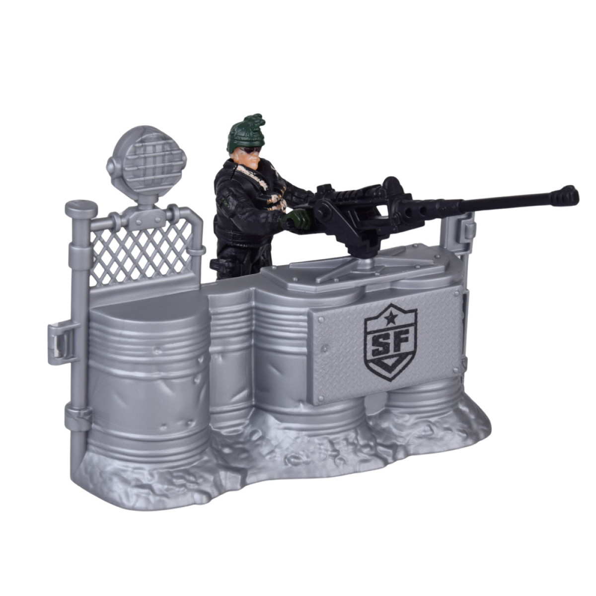 Paruoškite mūšio lauką kambaryje! Šis realistinis karinis rinkinys turi viską, ko reikia įdomioms misijoms: tankas, sraigtasparnis, naikintuvas, figūrėlė kareivio, šaudymo pozicija, kulkosvaidis ir gausus aksesuarų rinkinys (šautuvai, pistoletai, granatos, kastuvas). Kiekvienas elementas sukurtas dinamiškam, saugiam ir kūrybingam žaidimui.