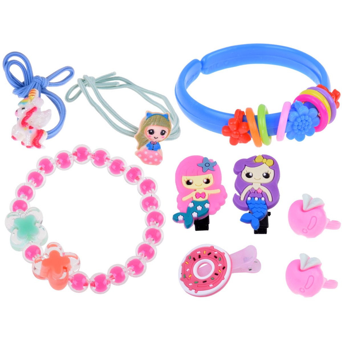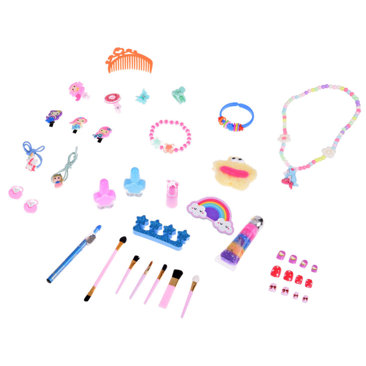 didelis grožio rinkinys undinėlė su šešėliais, nagų lakais, segtukais ir plaukų gumytėmis