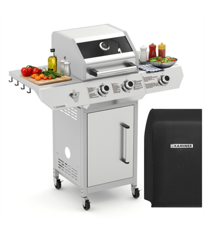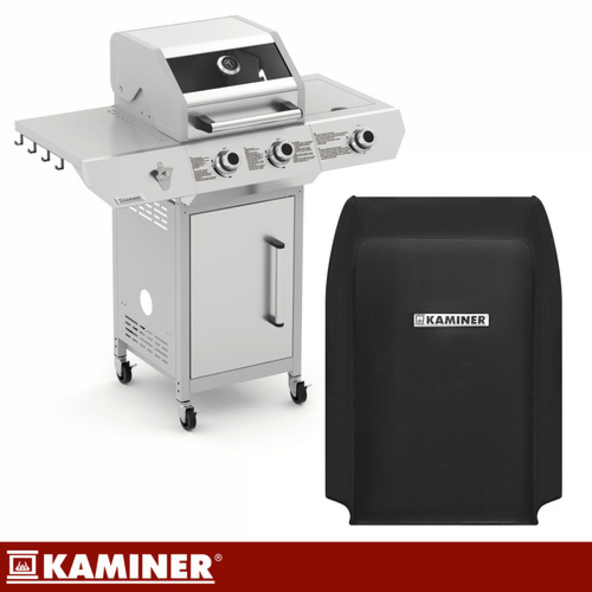 Dujinė kepsninė 2+1 10kW Kaminer Varen 3.0 nerūdijančio plieno su dangčiu ir iešmu