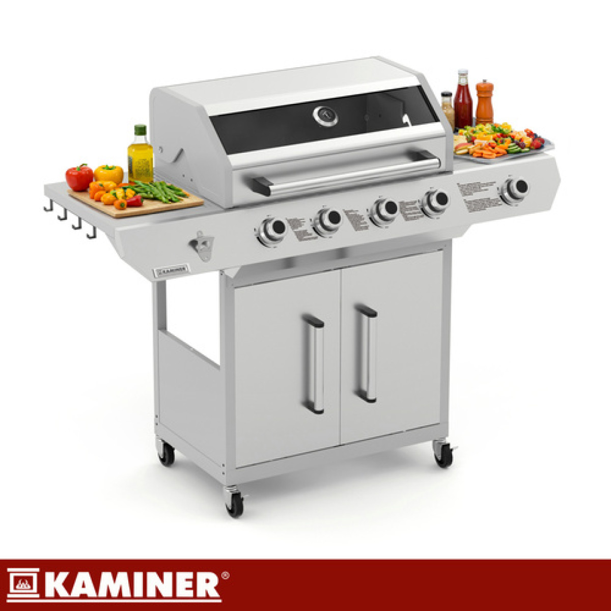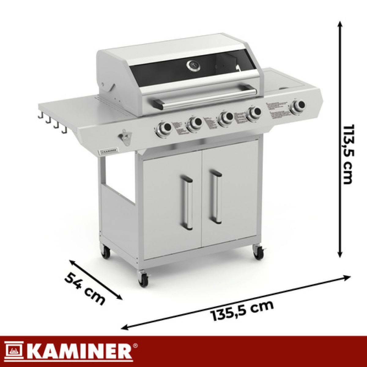 Dujinė kepsninė 4+1 17kW Kaminer Varen 5.0 nerūdijančio plieno ketaus grotelės su LED dangteliu