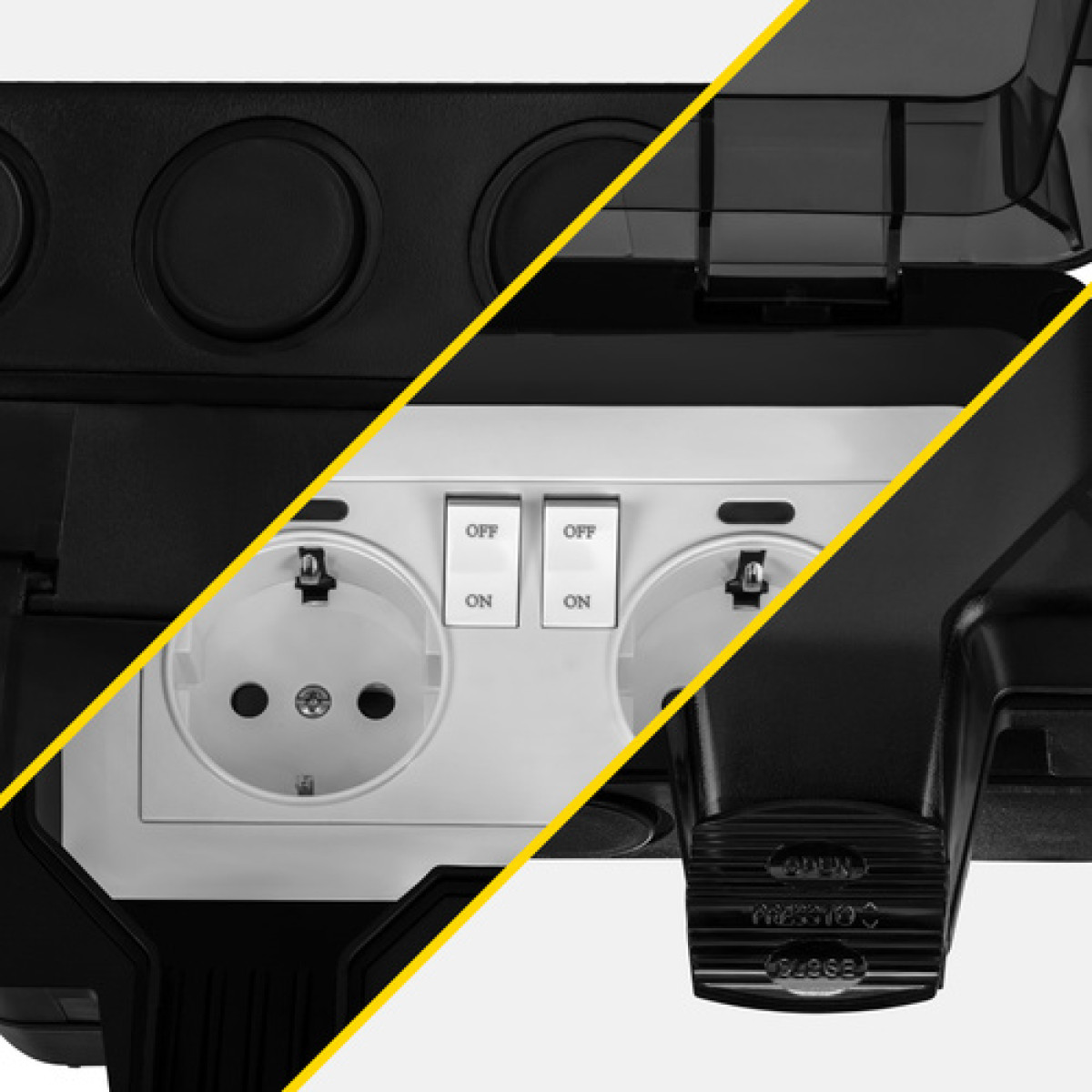 Šis dvigubas išorinis lizdas leidžia vienu metu prijungti du įrenginius, todėl jis padeda patogiau organizuoti elektros tiekimą. Uždengiamas dangtelis suteikia papildomą apsaugą, o tvirtas abs plastiko korpusas padeda apsisaugoti nuo kasdienių pažeidimų.